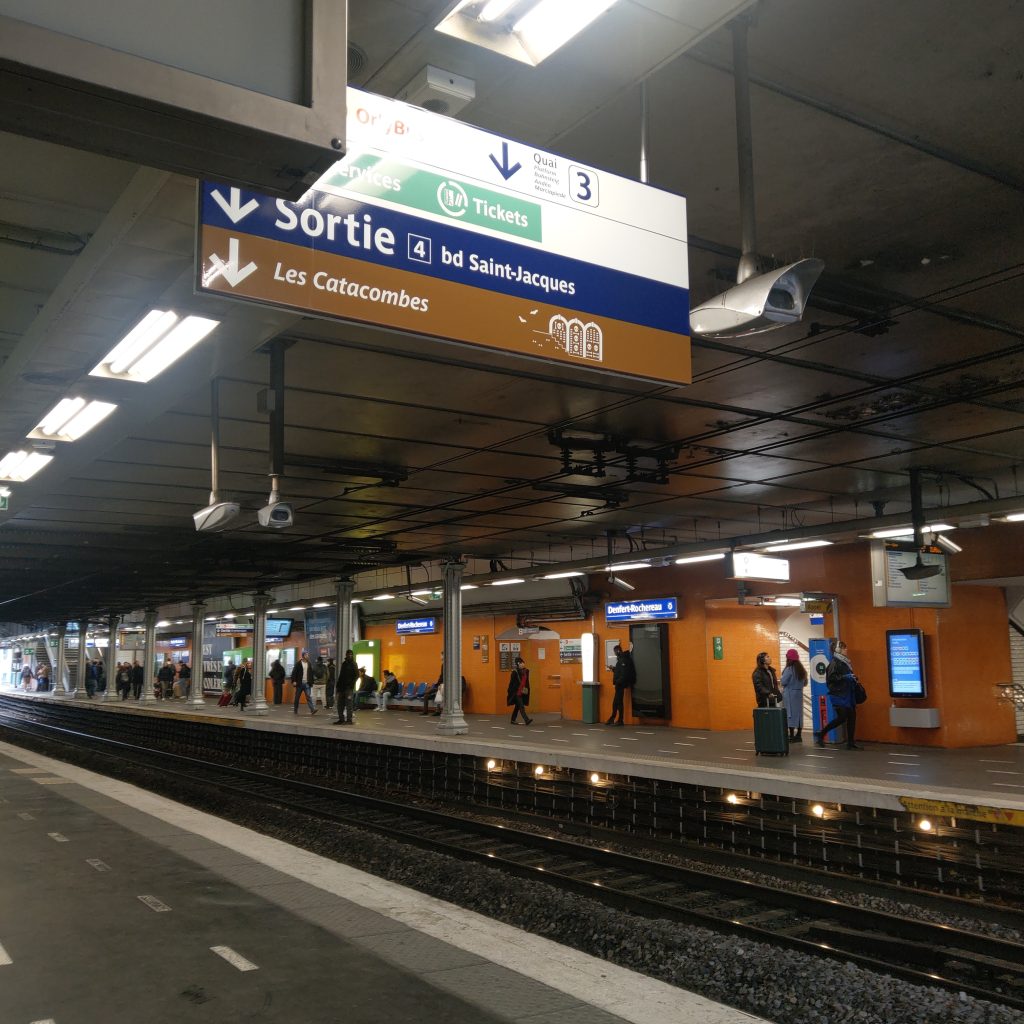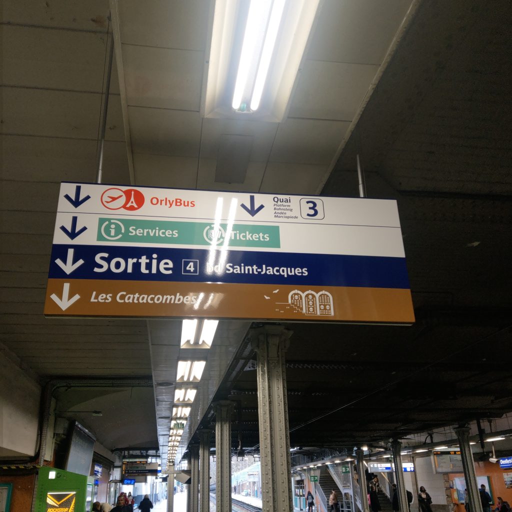 入境之後會通過科幻電影裡才有的未來式分流電梯,這大概是自助旅行以來給我最多驚喜的機場設計,領完行李後跟著指標搭乘電車前往第3航廈,準備買票搭乘RER B線去巴黎市區。機場附近人工票口總是大排長龍,因為很多人會連同Navigo卡一起在這兒買,如果單純只是買進市區的票,只要去一旁的購票機買票即可。第一段住宿的飯店在鵪鶉之丘,靠近RER B 線的Denfert Rochereau站,從機場出發單程大約11.8歐元。