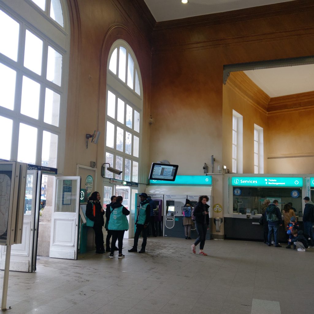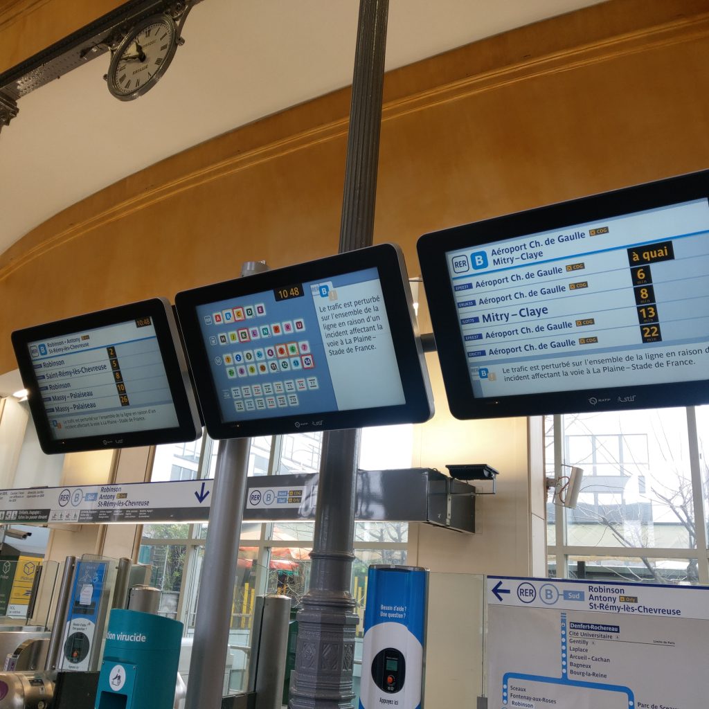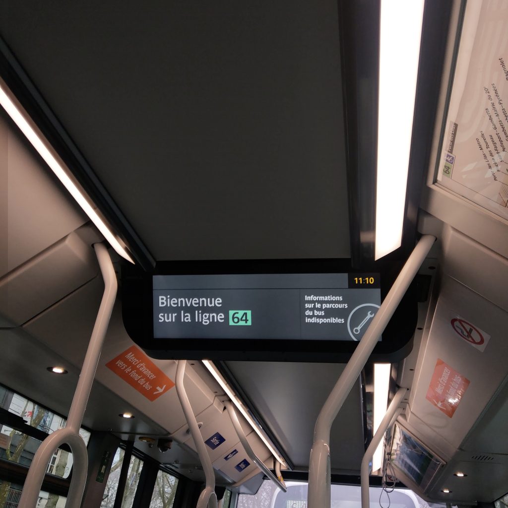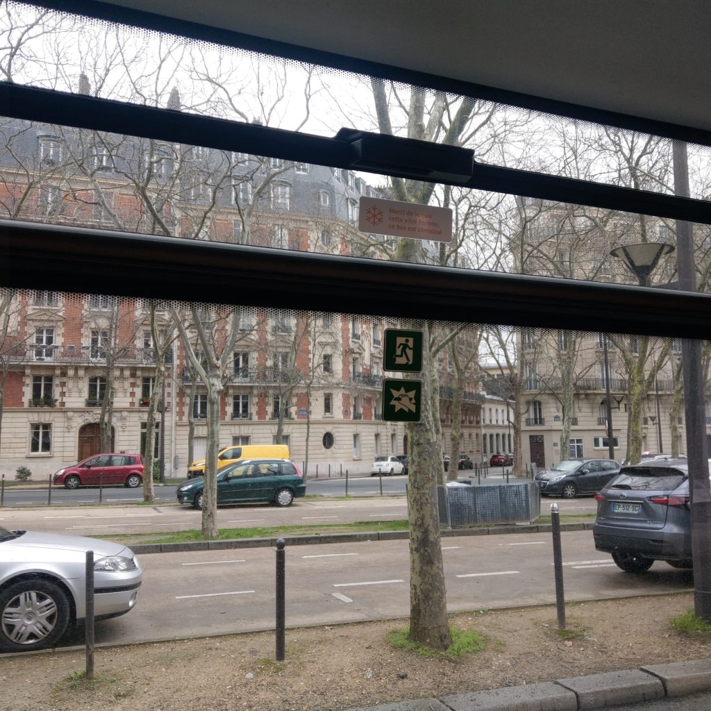 RER B線因為從機場出發,所以停靠的站多有設置電梯或手扶梯,但若需要轉乘一般巴黎地鐵,因為是百年前興建的運輸系統,幾乎沒有手扶梯或電梯這種東西,這時候巴黎的公車跟路面電車就成為友善的替代交通工具,兩者都是低底盤的設計,對於行動不便或是攜帶大件行李的旅客來說十分友善,出發前研究在巴黎的第一間飯店附近雖然有地鐵站,但看起來不太像是有電梯的大站,所以事先在google 上查詢了到飯店附近的公車,詢問車站人員公車站方向及搭配Google Map,順利搭上64號公車抵達飯店附近的Corvisart站。