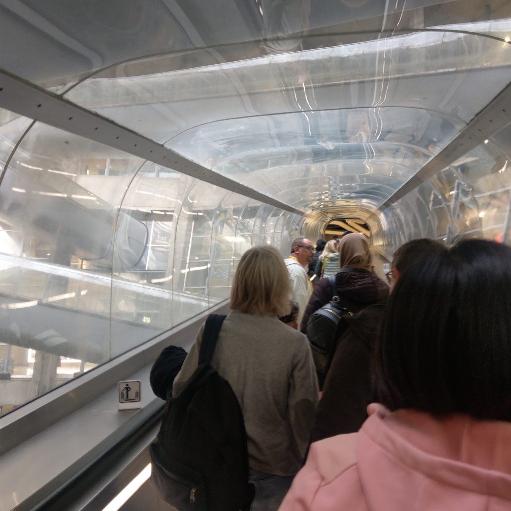 回程時候的機場則恰恰相反,早上10點多的班機,世界各國的旅客似乎約好了都在這時候出發,機場人潮洶湧,出境區大排長龍,然而法國機場的工作人員,竟然可以很有效率的引導人潮排隊、過安檢以及出境,和抵達時後的效率完全是不同表現,莫非法國行政效率是遇弱則弱,遇強(人多)則強的類型?