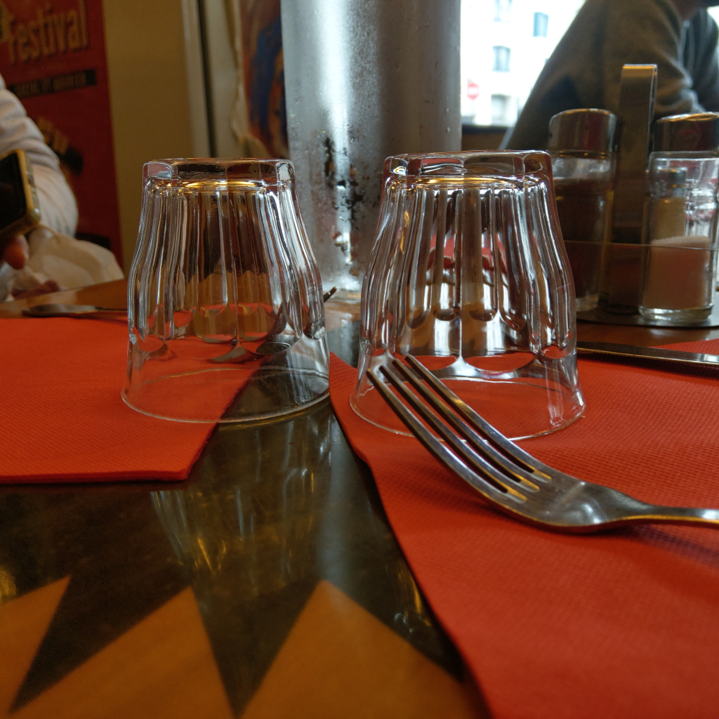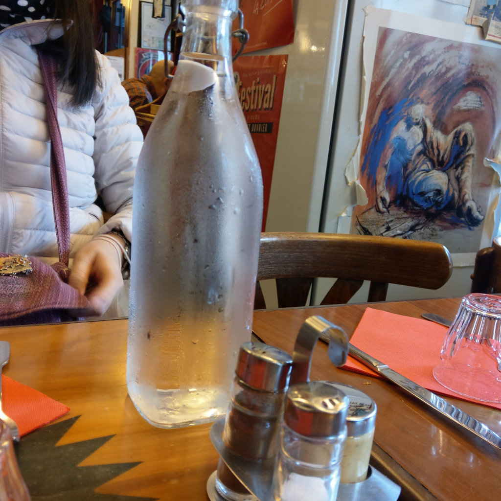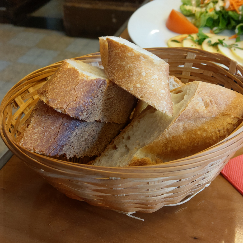 法餐的麵包及免費的自來水原則上無限量供應,有些餐廳會提供付費的水,但這趟法國行吃下來,或許因為是觀光客,餐廳也沒有另外詢問是否需要付費的水。友人點的豬頰肉入味且有嚼勁,搭配的馬鈴薯泥也十分可口滑順,我點的魚組合竟然是配飯的,一開始有些失望,但整體吃起來除了米飯味道普通外,三種魚配上咖哩醬料的口感倒是不錯,點心巧克力聖代則是相當濃郁香醇,反倒是友人的栗子聖代有些過甜,算是我第1餐沒有點到歐風主食的小慰藉。