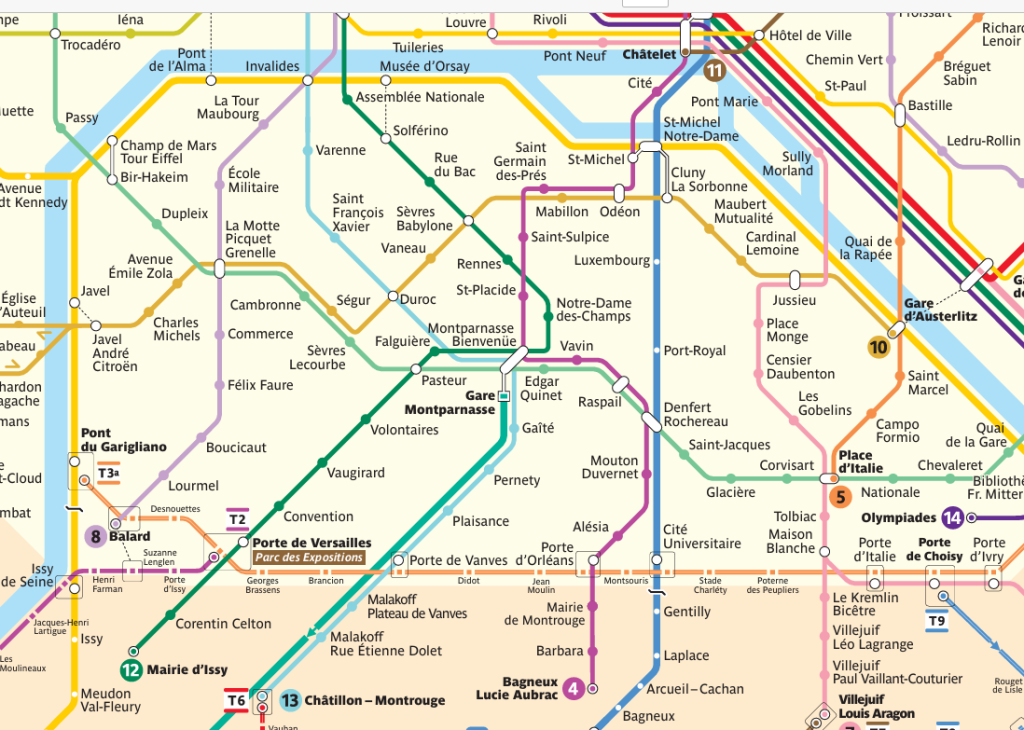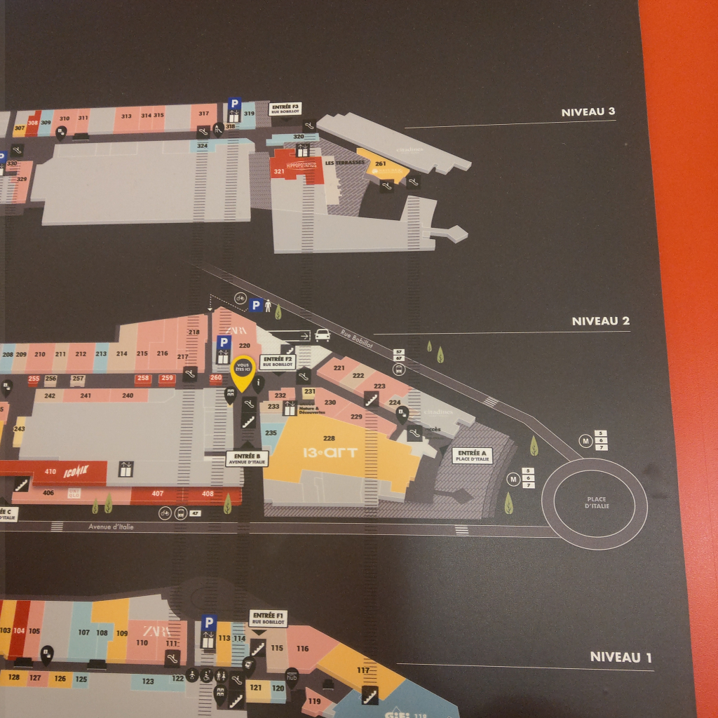 離飯店最近的是地鐵6號線的Corvisart站,去蒙帕納斯(Montparnasse)站或巴黎鐵塔附近的夏佑宮站(Trocadéro)或電影全面啟動場景的比爾哈海姆橋(Bir-Hakeim)站都很方便。此外走路或搭1站地鐵可以到義大利廣場(Place d’Italie)站,除了是shopping mall以及繁華的購物區外,轉乘10號線到巴士底監獄站或7號線到羅浮宮也都很方便。題外話,義大利廣場的商城本來沒有在安排在要逛的名單中,但因為去的時候是巴黎2月份的打折季,我和友人逛到欲罷不能XD,雖說沒有真的買很多,但就是覺得很多驚喜,像有一間店的特價衣服竟然是秤重量來賣,是台灣不曾看過的促銷手法;另外友人看中一家服裝店,走進去逛的時候時,有一個年輕且英文不錯的店員妹妹一直主動來找我講話,小妹妹很興奮可以有機會說英語,說她曾經學過中文但覺得太難,目前在學日語,她的父母來自中東,感覺她是移民第2代,擁有很適合做銷售的個性(喜愛找人聊天XD),不太清楚法國服飾店的銷售抽成怎麼算,我朋友的這個營業額等於是這個小妹妹用英文積極攀話加詢問介紹拿下的(當然還有我從中翻譯XD),如果我是老闆會很喜歡這種員工,積極又有能力廣開客源,可是後面結帳的時候感覺並不會算在特別員工的營業額上,她的同事也沒有萬歲 !今天又有進帳的高興感,或許小妹妹適合再往上進精品業或者去以績效掛帥的美國更適合 ?