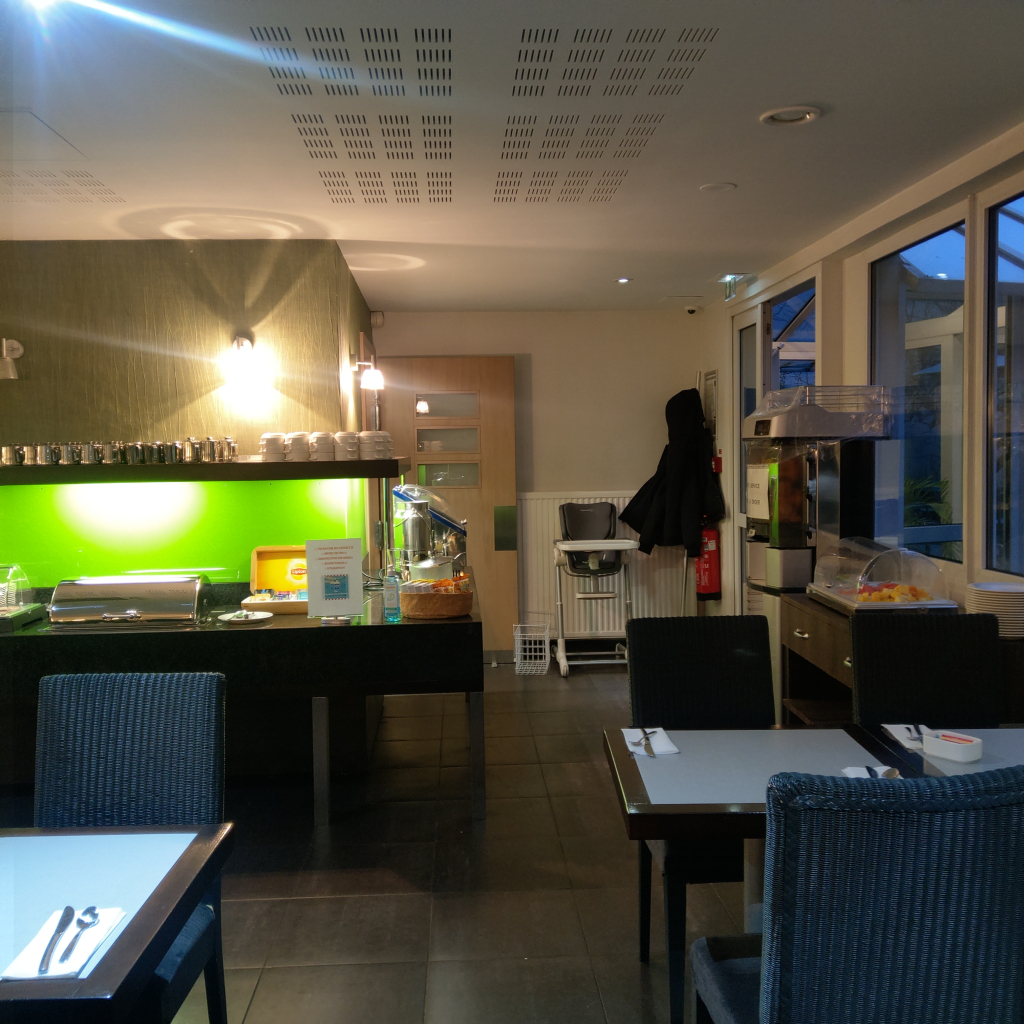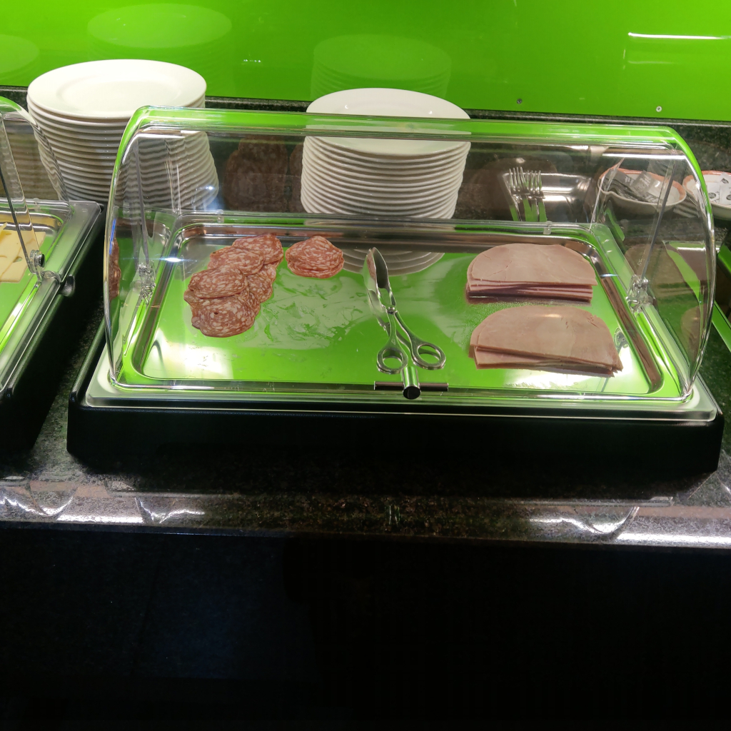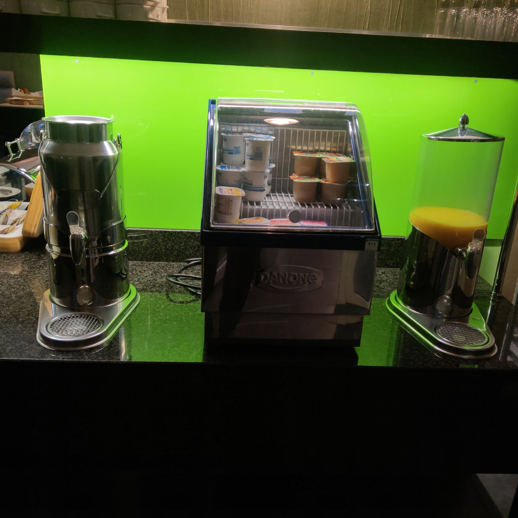 飯店早餐1個人12歐,有麵包、水煮蛋、肉片、乳酪、優格、牛奶、果汁以及水果等簡單的歐式自助吧早餐,光是麵包、肉片及各式各樣的起司就十分美味了,還發現歐洲的自動咖啡機除了expresso和拿鐵外,還有一個Ristretto的選項,網路上查了一下似乎是比expresso份量更小,味道更為濃郁的濃縮咖啡,適合做為基底加上牛奶或其他飲品,嘗試加入牛奶後還挺不賴的。