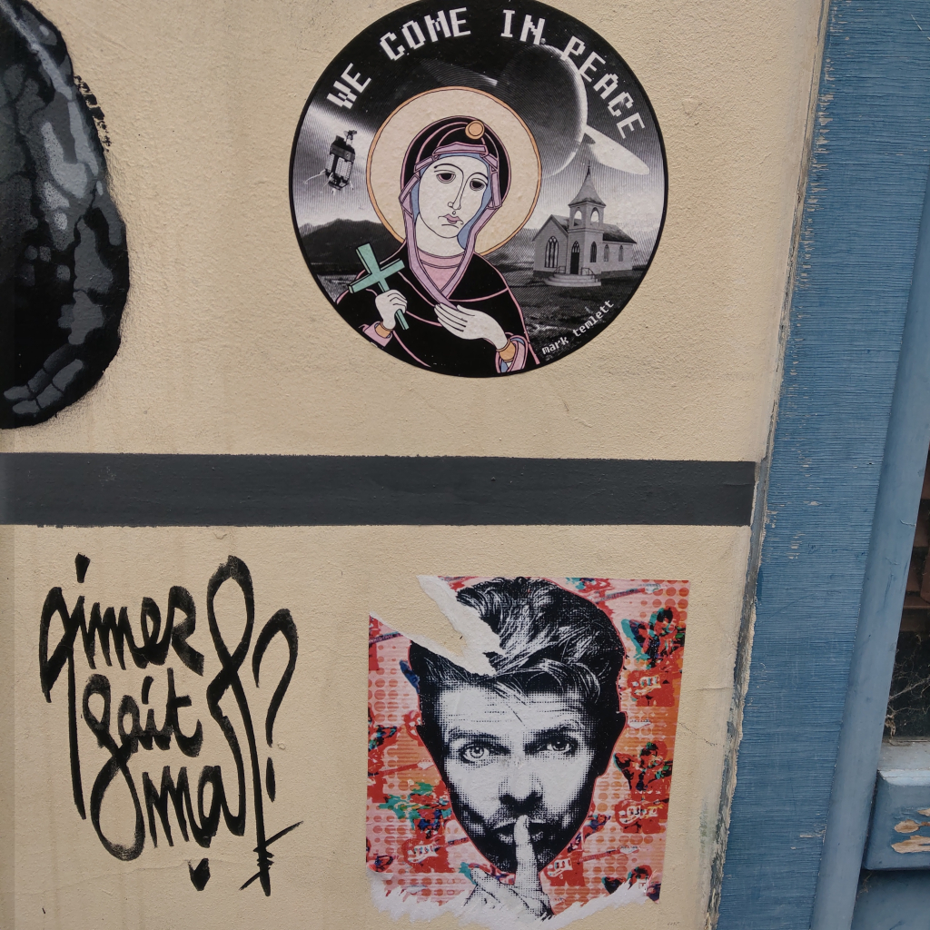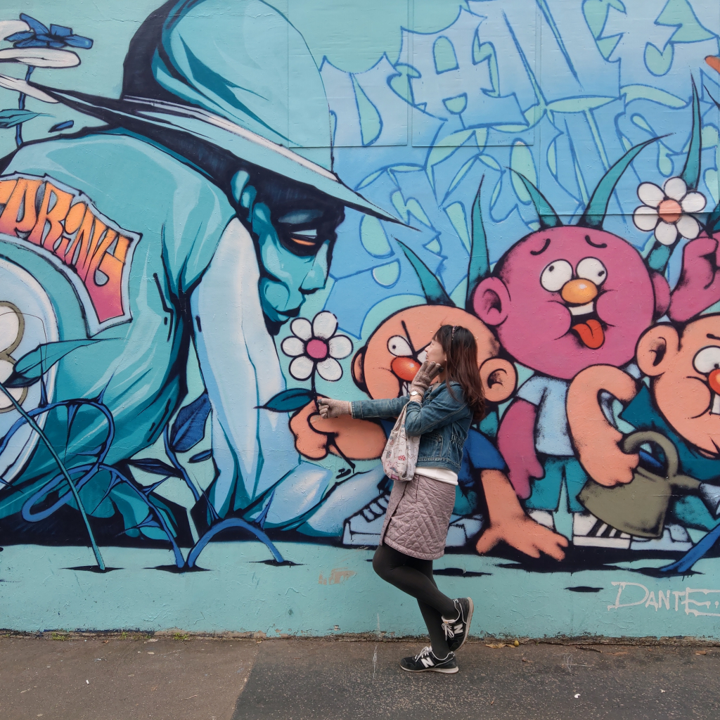 若要說這間飯店的缺點就是位於鵪鶉之丘(也是他的優點XD),所謂的「丘」真的是位於山丘上的意思,雖然外表完全看不出來,但從公車站到飯店的確要經過一個頗長的上坡路段,剛到的第一天,飄著微微細雨,我和友人化身成希臘神話中的薛西佛斯般一步一步推著行李上坡,大概12分鐘的路程不算太長,但因為是上坡,像走了20幾分鐘那麼久(汗~~),好在行李不會又滾回原地(笑)。但是進到巷子後,滿滿的街頭塗鴉及藝術創作頓時會讓人覺得值得這一段路途的付出。