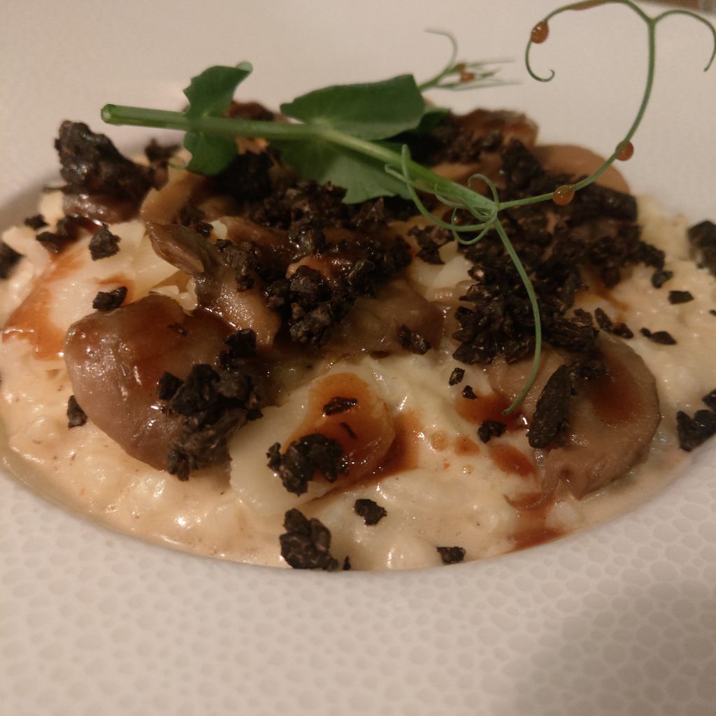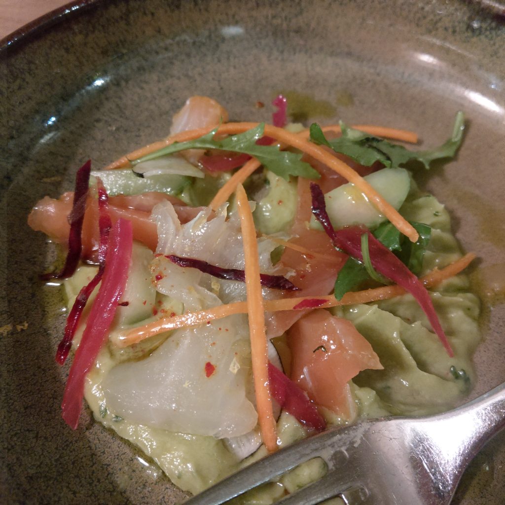 菜單雖然有英文版,但其實不是所有食材的英文都認得,所以google翻譯或手機字典還是很重要的,選擇了煙燻鮭魚前菜及松露燉飯,友人選了鰹魚花椰菜。