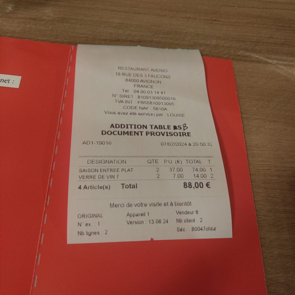 亞維儂算是觀光重城,可以用餐的地方不少,選擇必比登推薦的餐廳是為了明天的米其林三星之行暖身用,話說必比登雖然也是米其林體系評選的,但評分嚴格度與米其林星級餐廳還是不同,比較像是在地小吃推薦,但臺灣的媒體好像只要跟米其林沾上邊,就會不斷放大米其林的字樣,然後忽略必比登跟正港米其林星級餐廳的差別,雖然是一種宣傳手法,久而久之大家會覺得米其林餐廳到處都是,反而對那些努力付出而拿星的餐廳很不公平,以2024年來說,臺灣獲得米其林1星以上的餐廳只有49家,獲得必比登推薦的餐廳卻有129家,所以每次看到必比登推薦的餐廳被媒體稱為米其林推薦的餐廳,都不自覺會在心裡默念,是必比登,不是米其林。