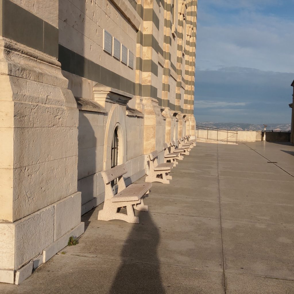馬賽的博物館大多10點才開,早上8點多唯一有營業的景點只有山頂的守護聖母院,從舊港乘坐公車前往,沿途經過大大小小的坡道,很多時候感覺整車都是傾斜掛在路上,公車司機硬是開車技術了得,一個加速一個轉彎,輕鬆又安全的把乘客送到目的地。不愧是生活在終極殺陣(Taxi)拍攝地的人民,個個都有超凡開車技術,去<玩命關頭>軋上一角絕不是問題 。