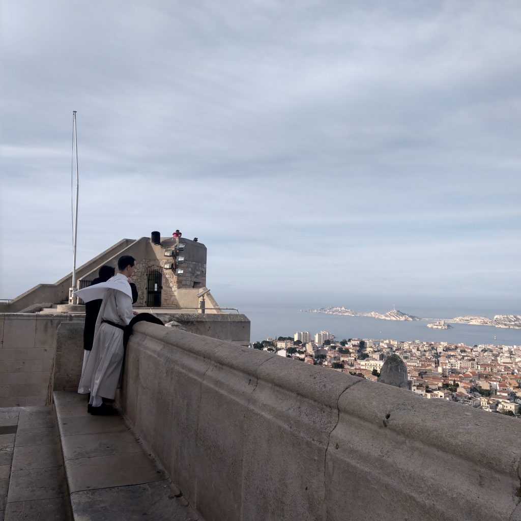 後來離開前又遇見修士/神父們倚在城牆上遠望,白袍飄逸,仙氣的滿滿…
