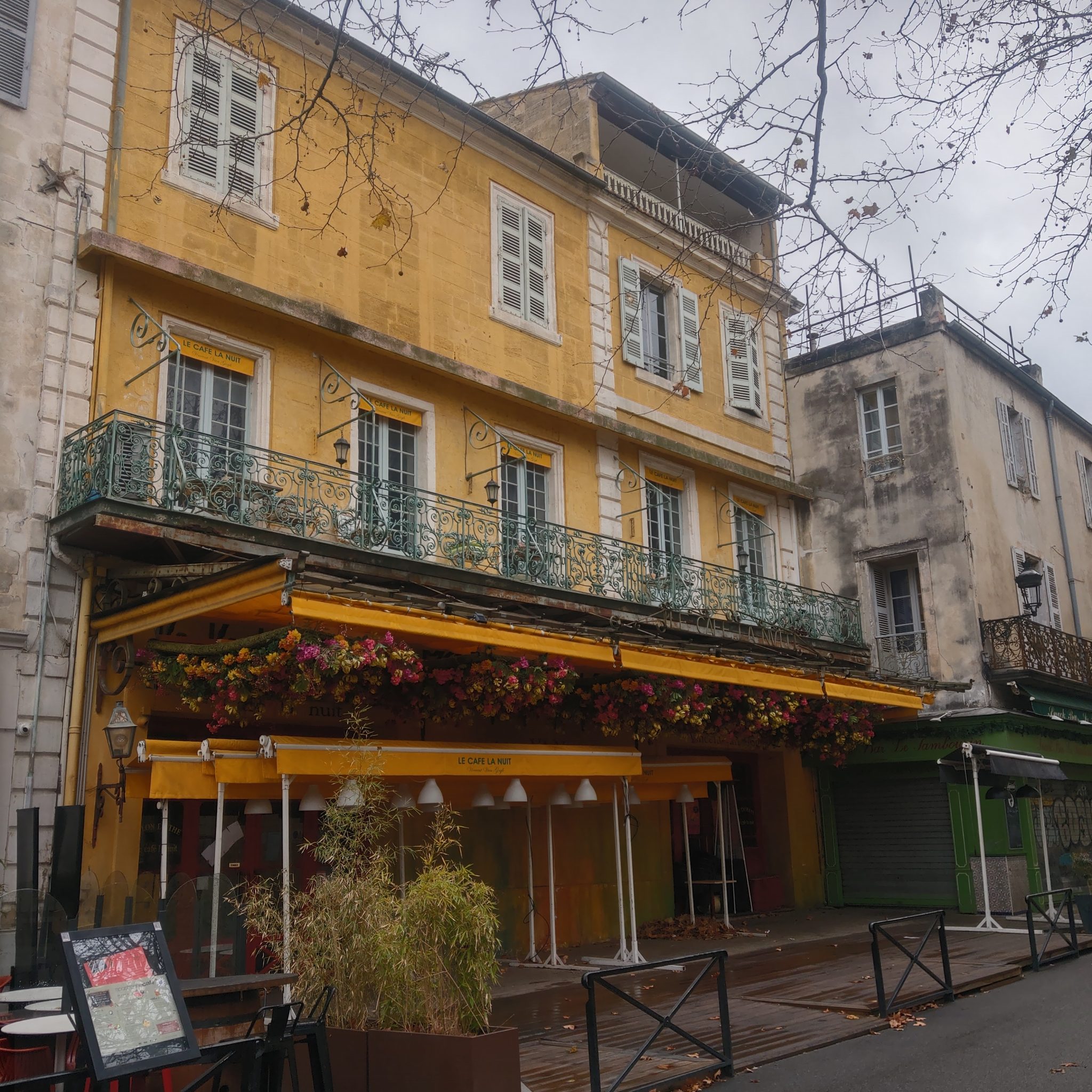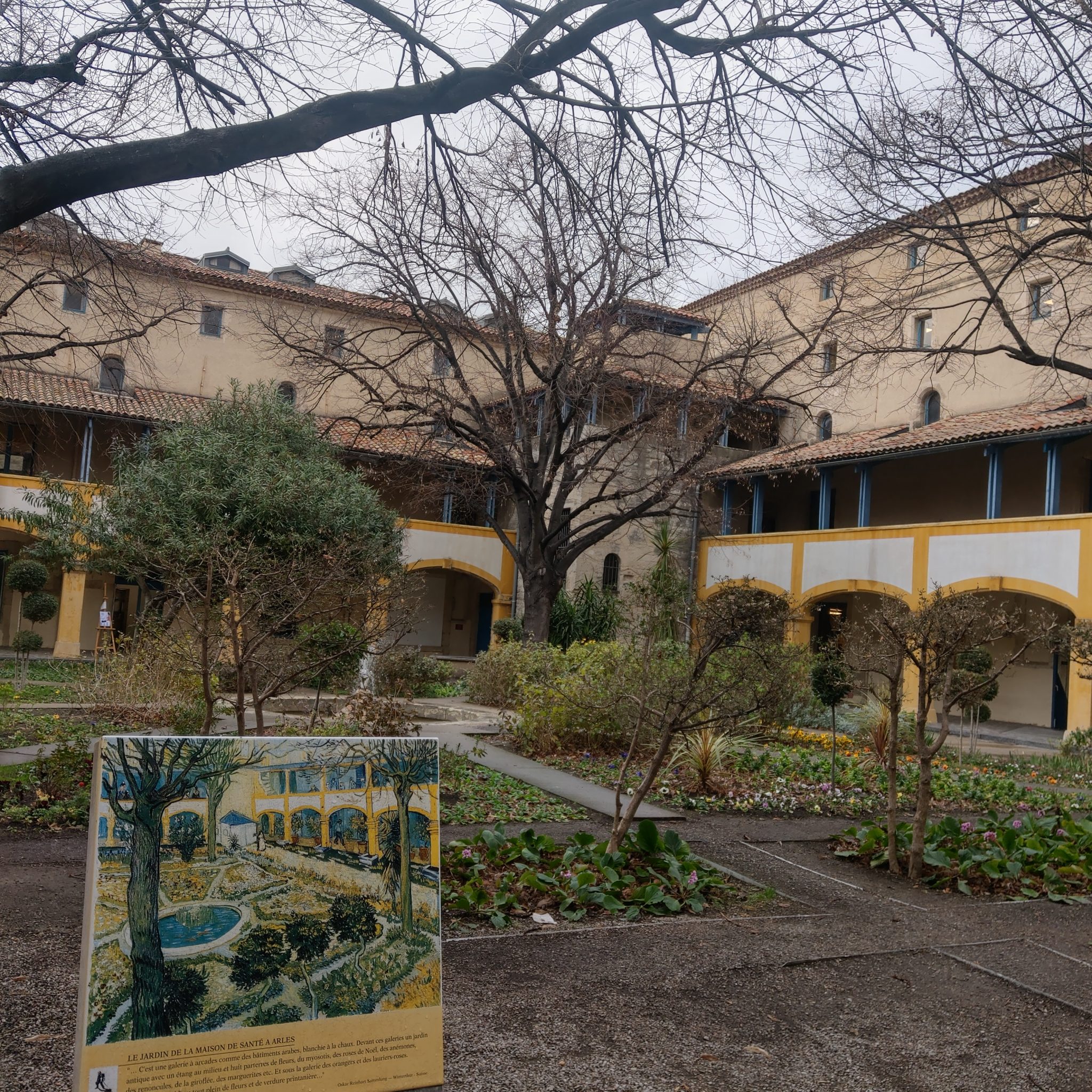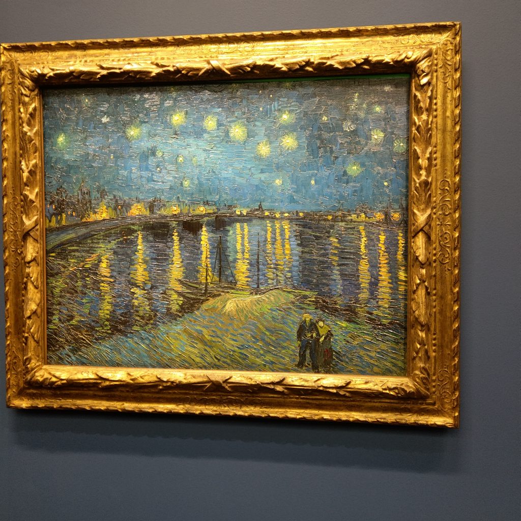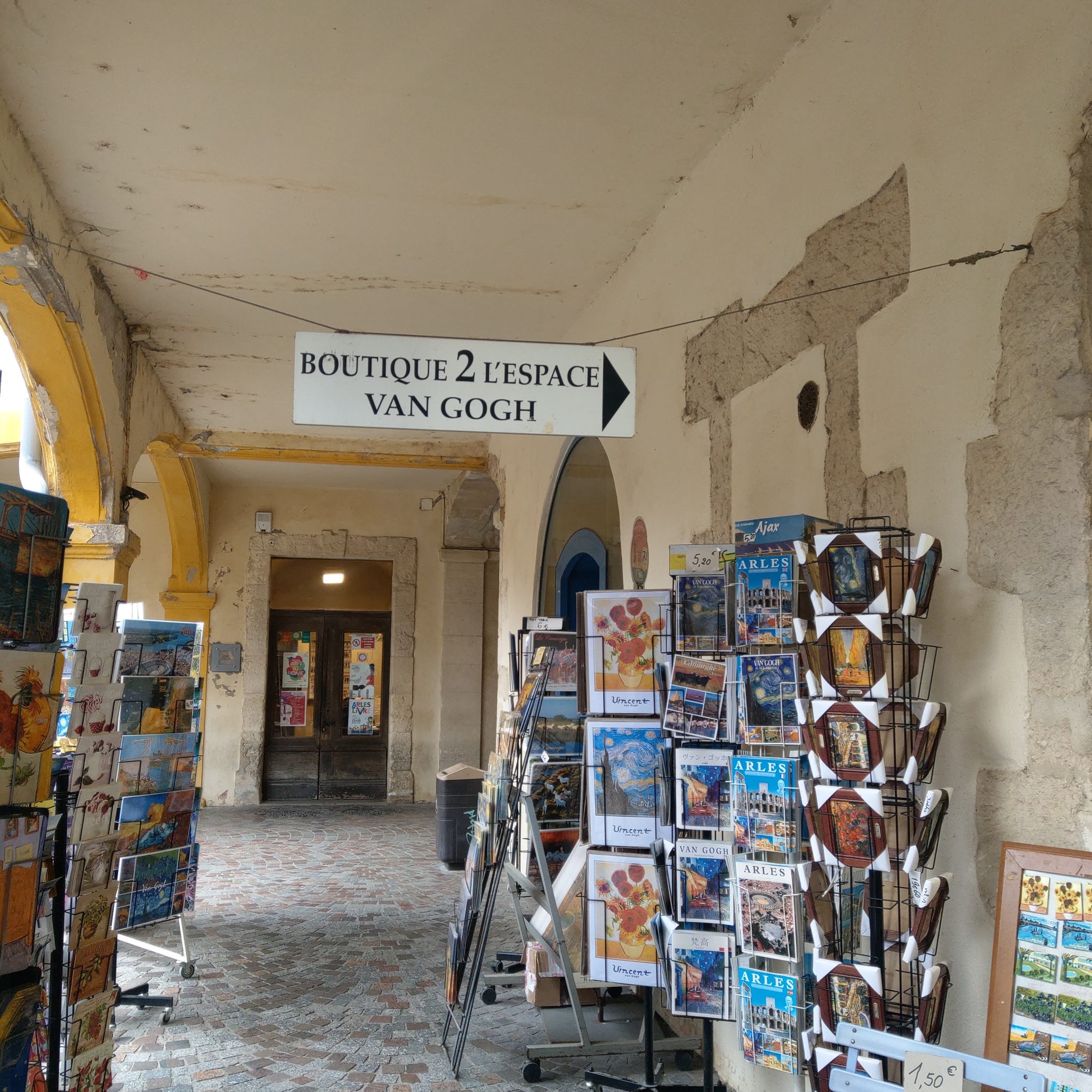 亞爾則是梵谷生命最後幾年中曾經待過的南法小鎮,著名的「隆河下的星空」以及「星空下的咖啡座」都是在這裡完成的。從維基看梵谷的人生經歷有點坎坷,家人希望他讀神學院,但考試落榜;考上安特衛普的皇家藝術學院後,又跟教授發生衝突而被退學,生活窮困潦倒卻有好弟弟一直救濟支援他,加上確實有藝術方面的天分,所以可以一直創作並與藝術圈的人往來,1888年來到亞爾居住是他人生的轉戾點,在這兒與高更同住了一段時間,誰知友誼的小船說翻就翻,兩人發生衝突,越演越烈,最後導致割耳事件的發生(有種BL劇的既視感?),自此之後開始梵谷療養院的生涯,又從亞爾轉院到臨近的聖雷米精神病院,並在那裡畫出舉世聞名的「星夜」。
