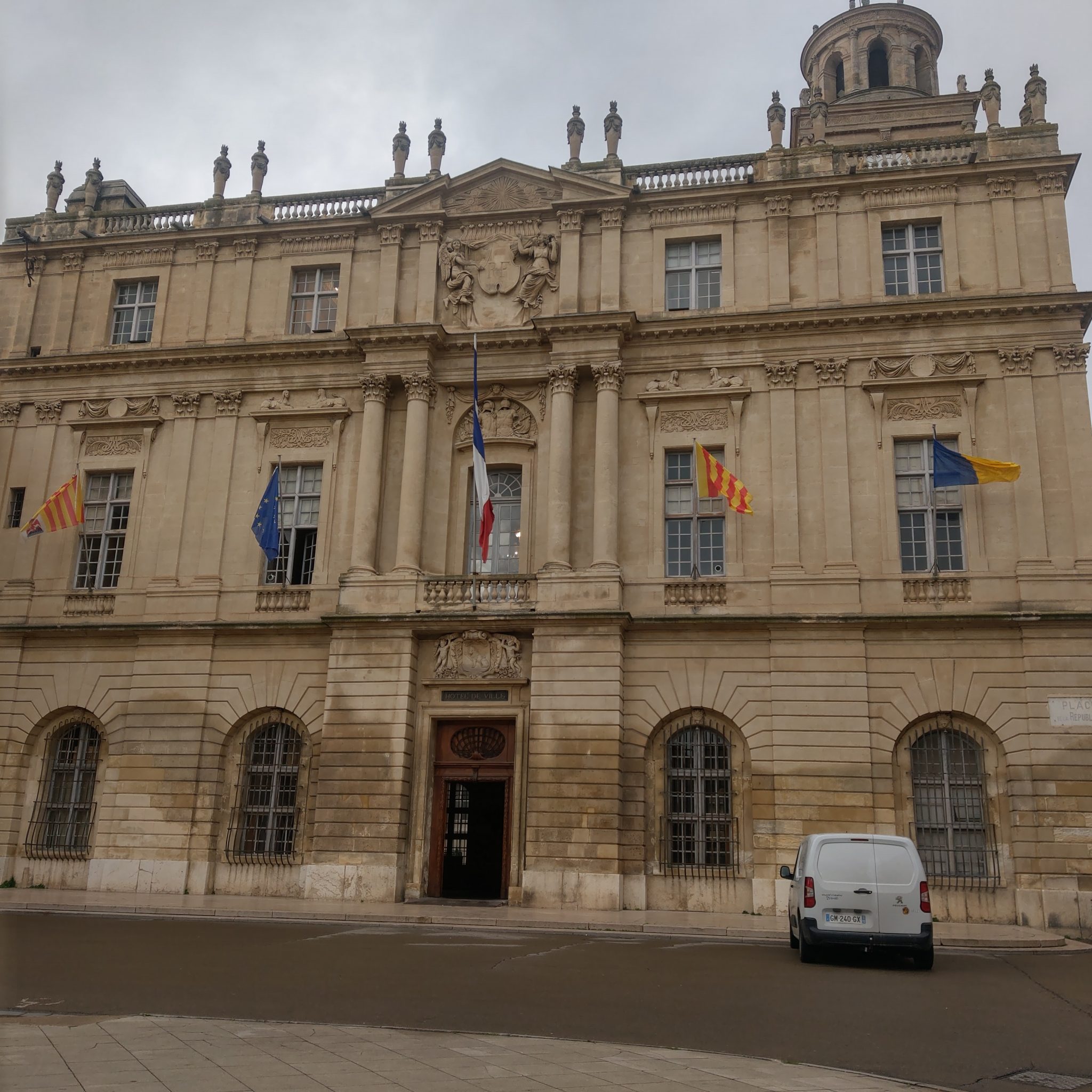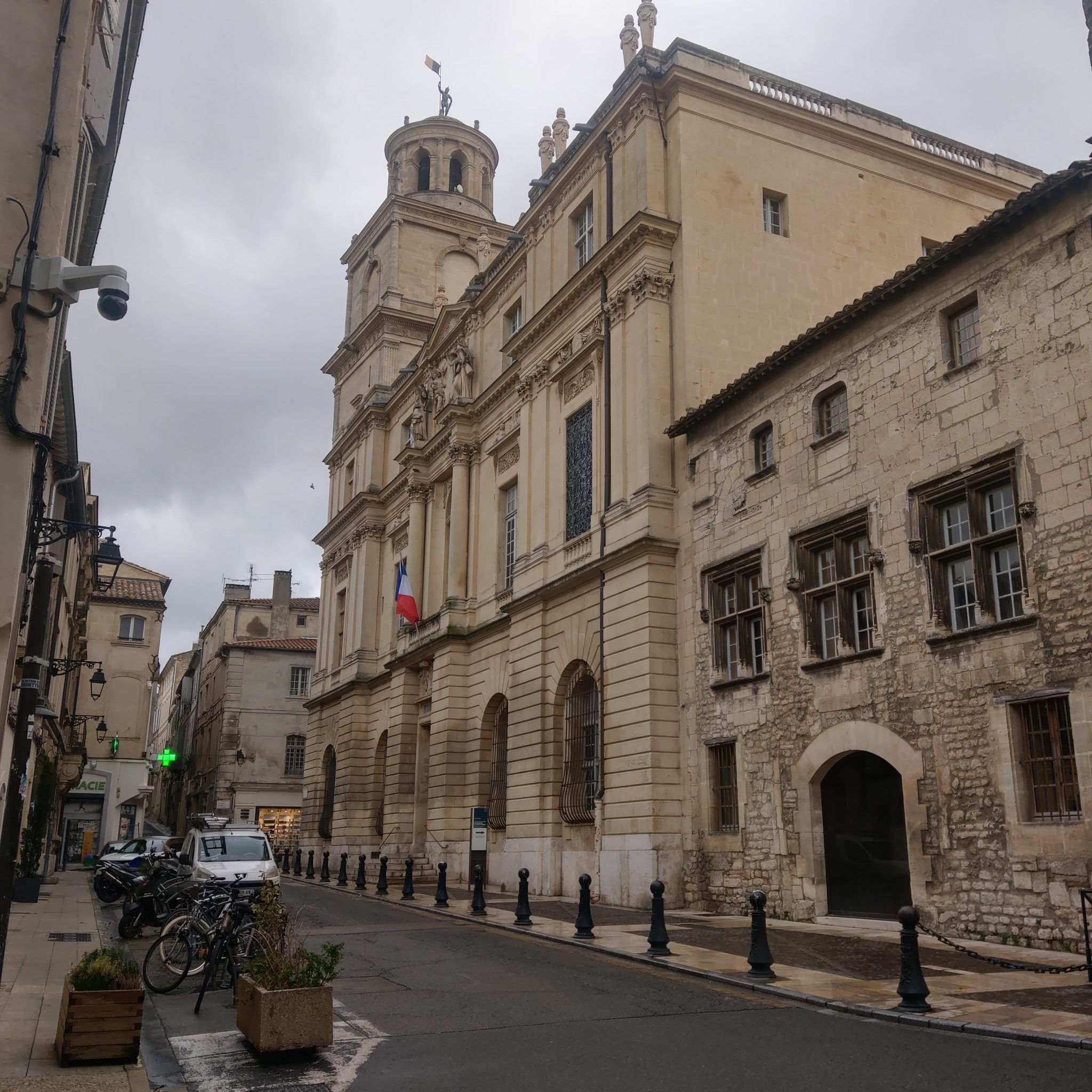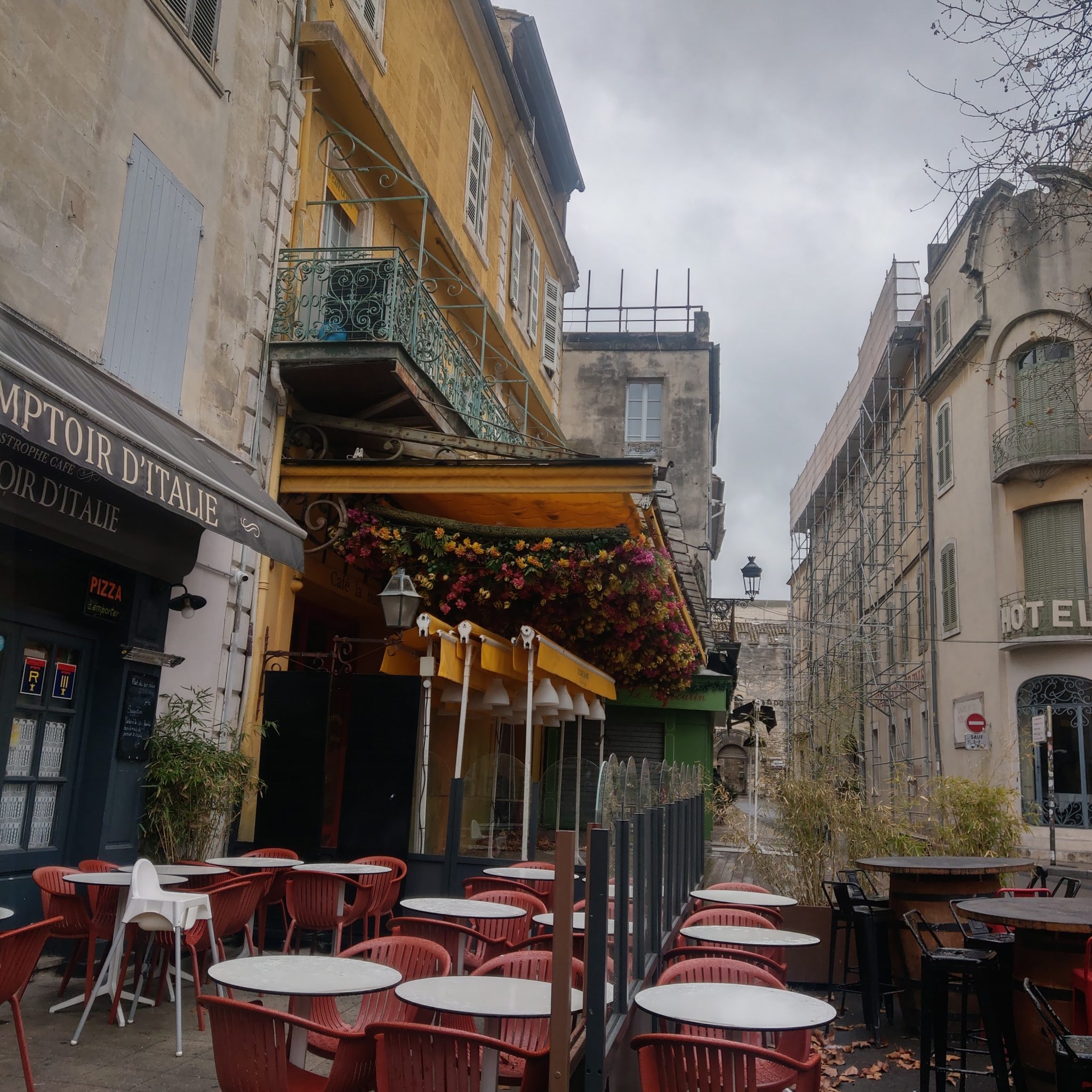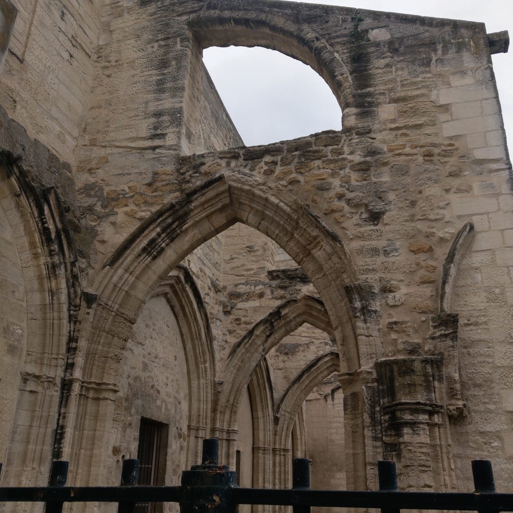由於公車班次有限,一般都會規劃一大早出發,中午返回,但早起的額度昨天已經給了馬賽,加上今天就要回巴黎了,9號上午決定悠閒一點過,所以硬是等到退房時間再出發,於是吃完飯店早餐後友人繼續亞維儂的巡禮,我則慢慢在房間收拾行李,並壓線逛了一下附近的商店及教皇宮。兩人約在城牆外碰面,誰知11點多亞維儂開始下起豆大般的雨,因為雨傘放在台灣,我跟隨歐洲在地人的腳步,接受大自然的洗禮(淋雨XD),友人有備用雨衣放在行李箱,決定回飯店拿來借我,我則繼續尋找轉運站的下落。