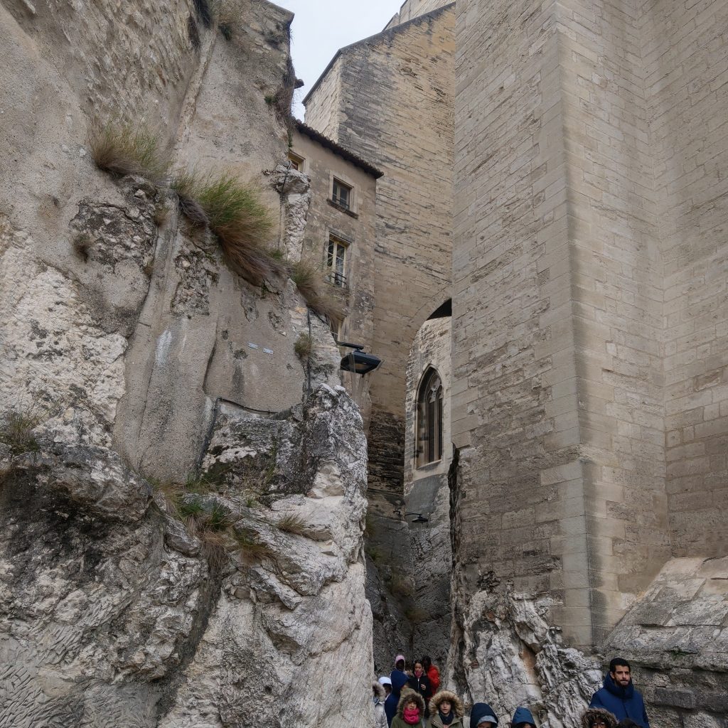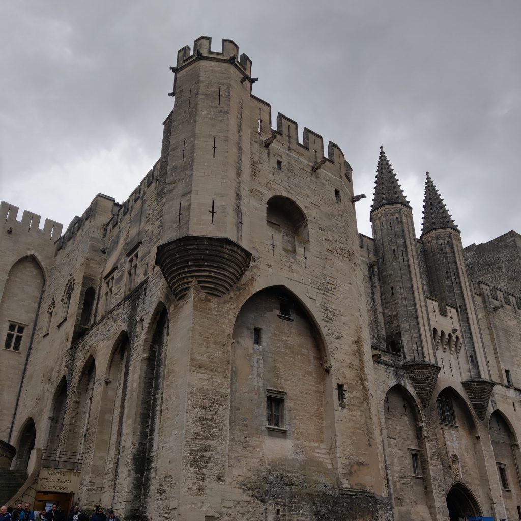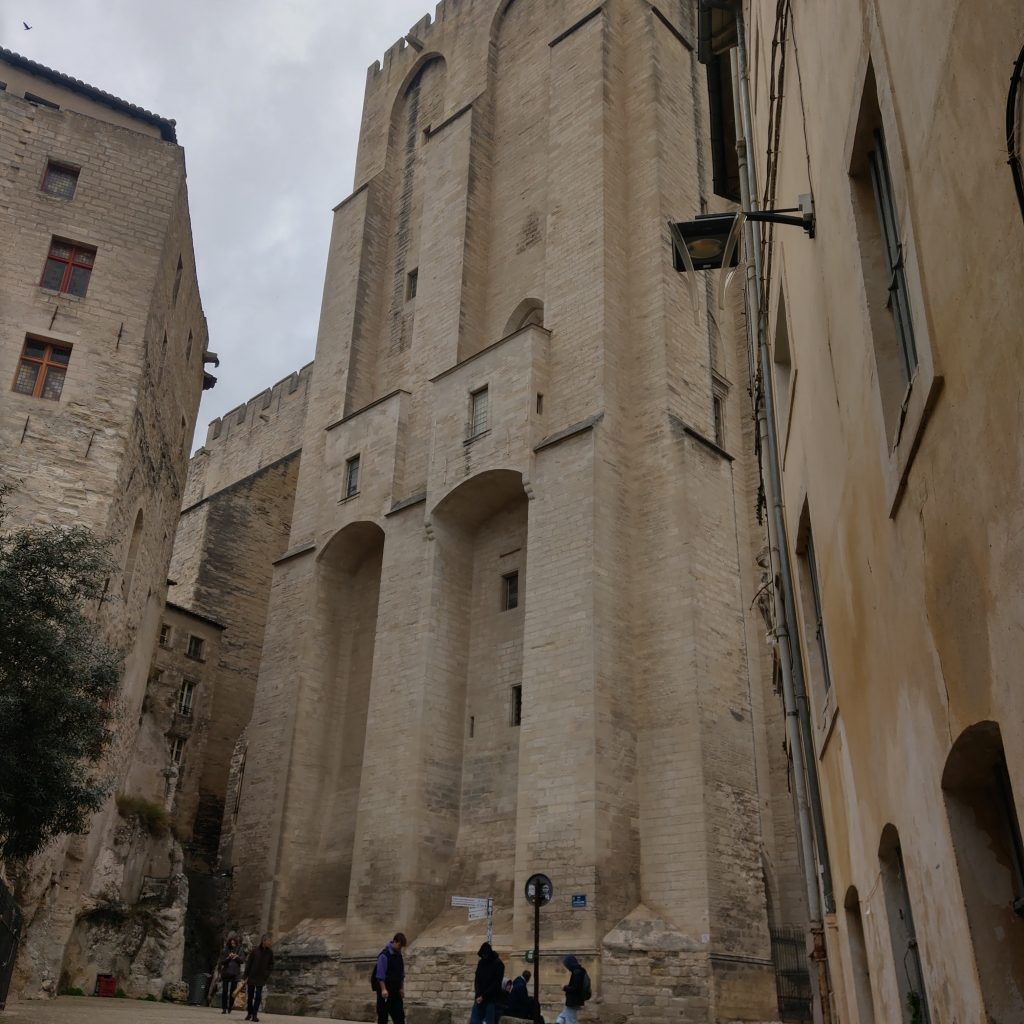 白天的亞維儂真的很有中世紀古鎮的感覺,教皇宮雖然某部分也算是政治魁儡遺產,畢竟曾和羅馬教廷分庭抗禮,氣勢上自不同於一般的教堂。因為時間緊湊沒有另外買票進去,僅在外圍拍照,但建築物高聳壯觀,已讓人有宛若身處在群山峻嶺之中的錯覺。