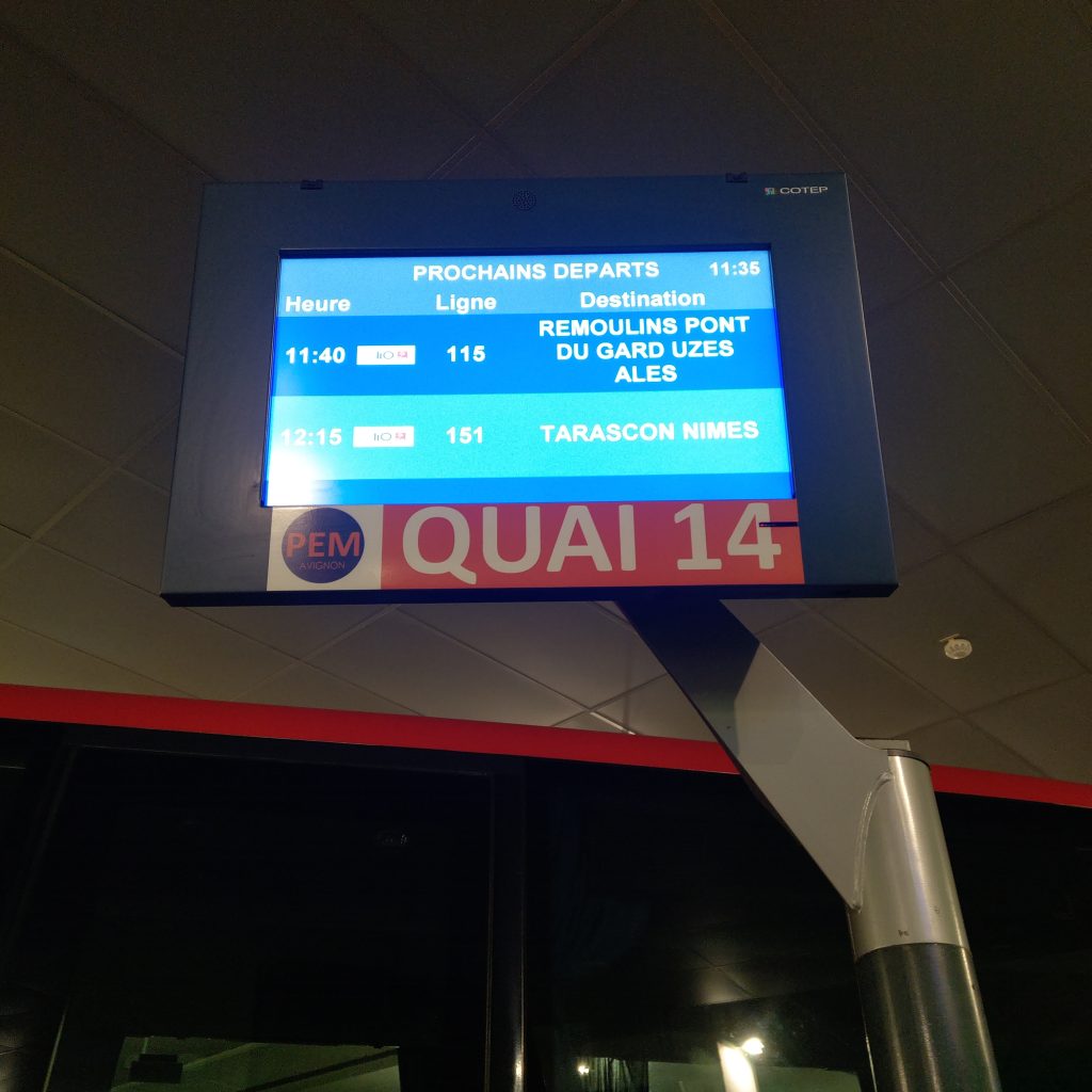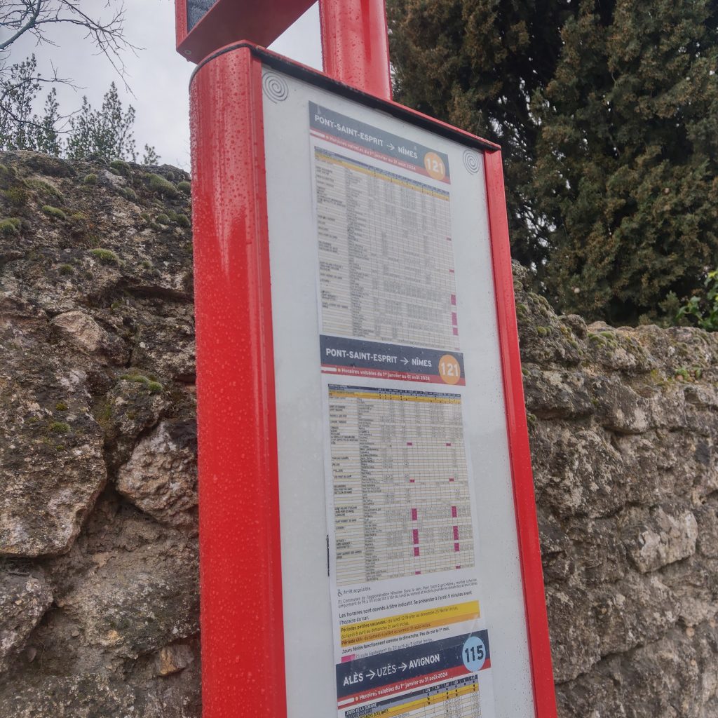 11:30友人的身影總算出現在轉運站,兩個人急忙衝進等車的地方,熱心的工讀生弟弟雖然英語不通,不知道line one one five是什麼,但看到既然是觀光客,就用法文說”Pont du gard?”,總算在發車前順利上車。