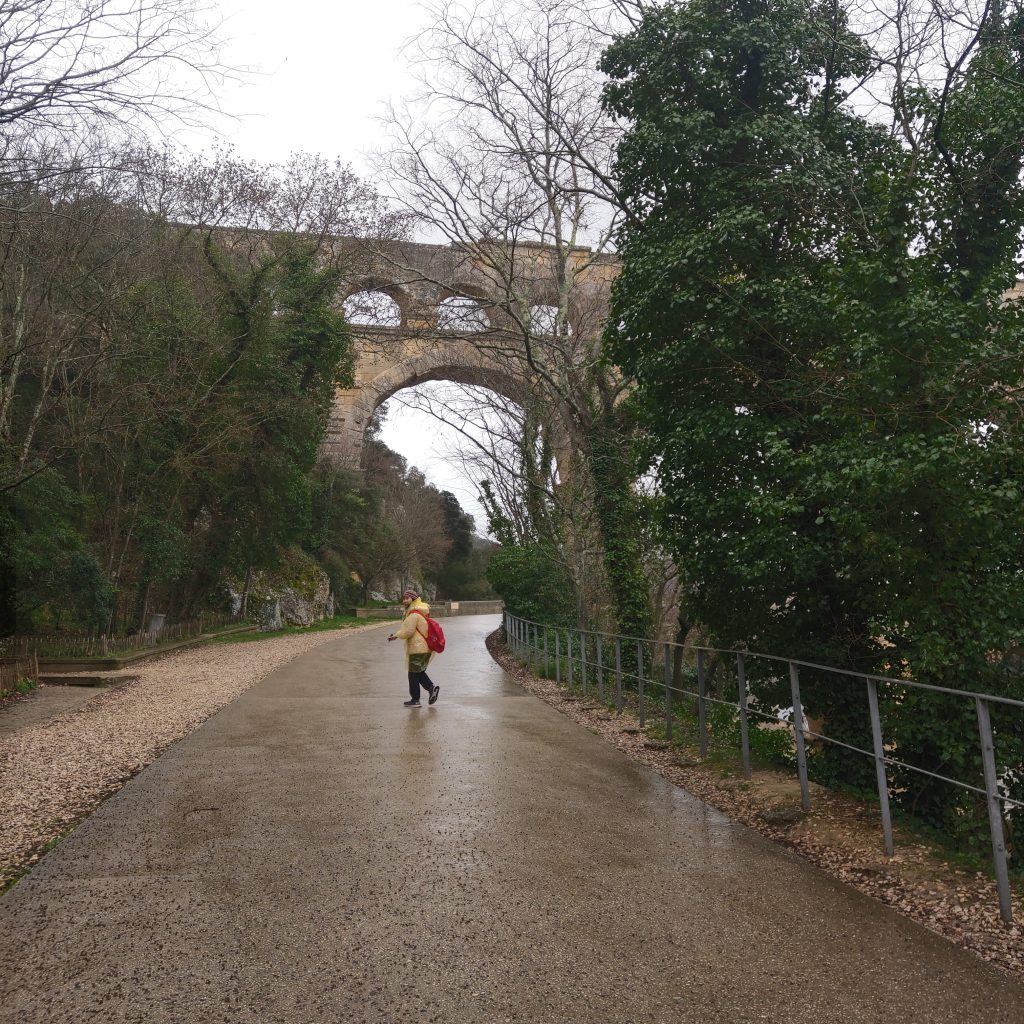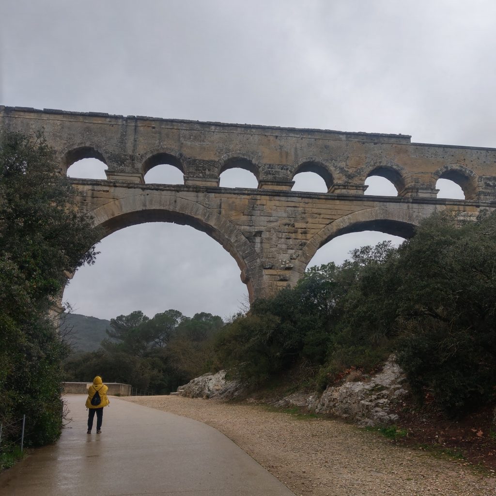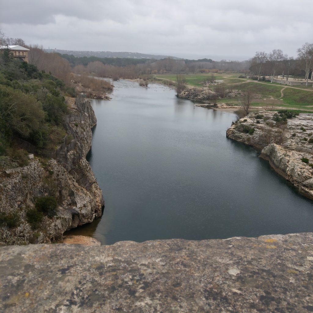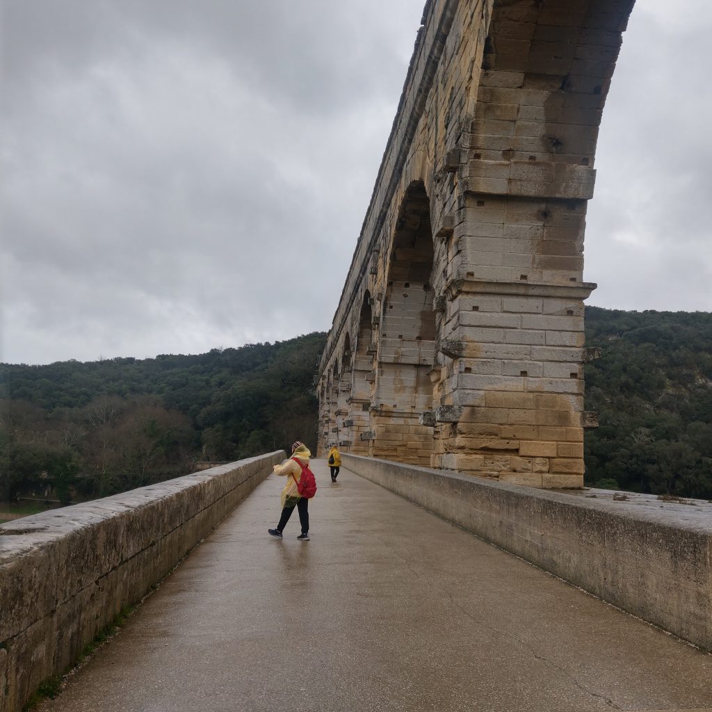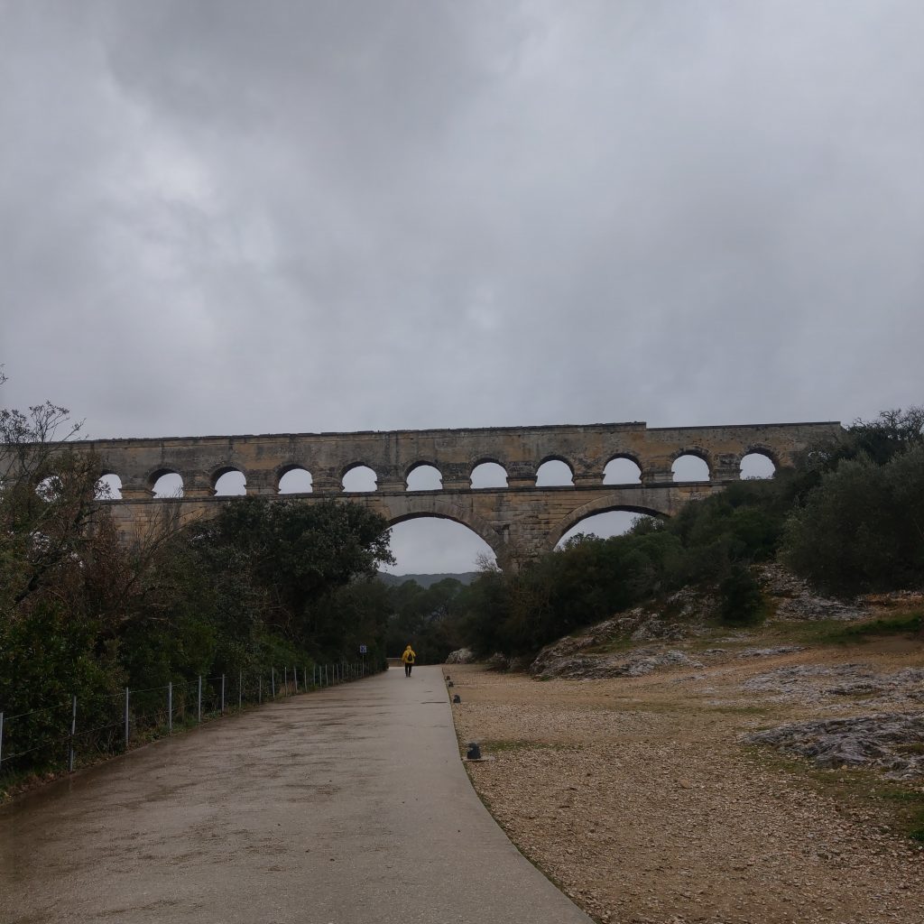 在橋上駐足欣賞前方的加爾河,頓時體驗到可以靜下心來享受自然,感受天地奧秘的靜謐,除了偶有路過的單車騎士外,幾乎沒有其他人。來到這兒的人應該都會不自覺會想「2000多年前的羅馬人用甚麼樣的技術建起這座水道橋?」、「是用甚麼技術將水送到幾百公里外的城市?」、「這座橋如何在羅馬帝國滅亡後,經歷千年的風霜至今仍屹立不搖」?