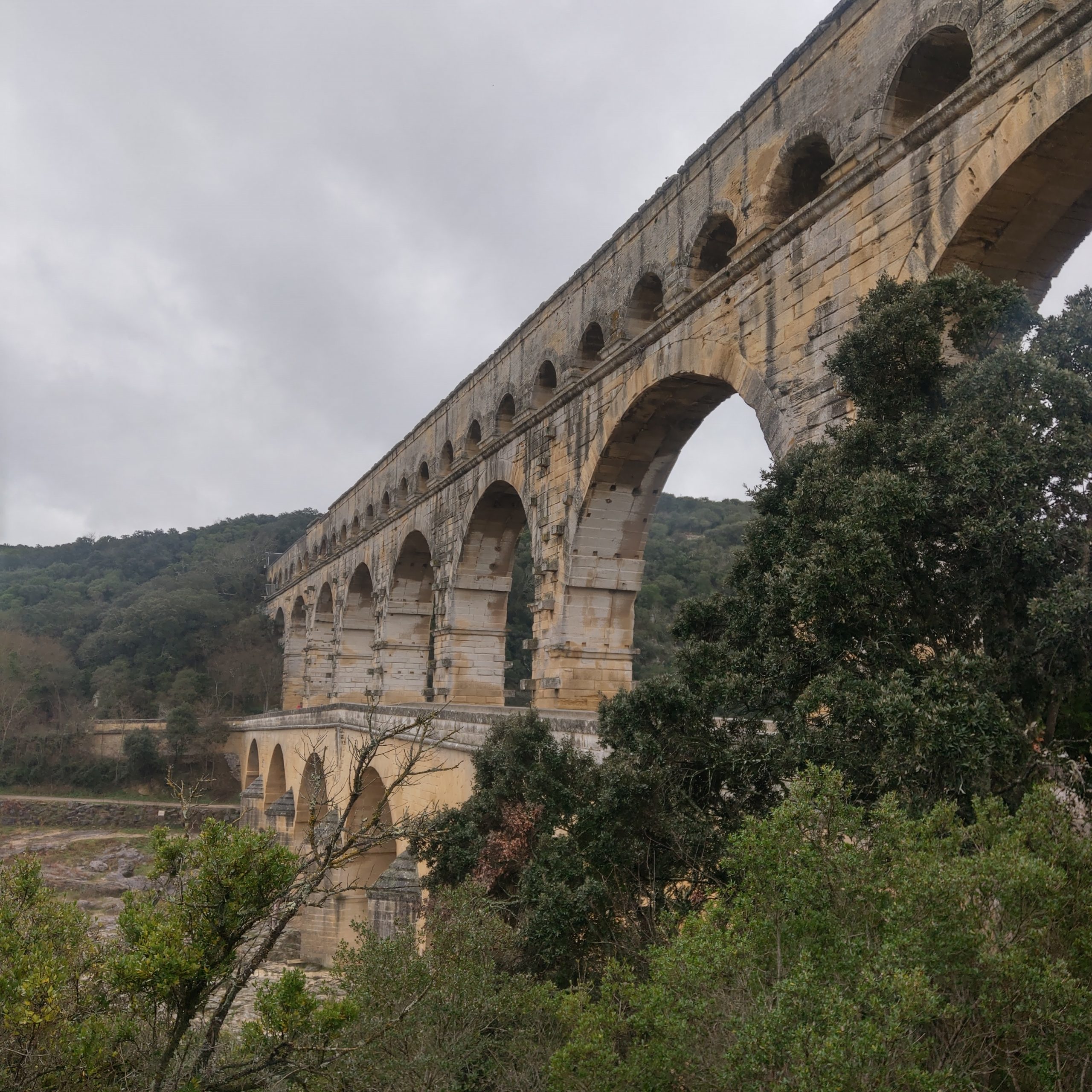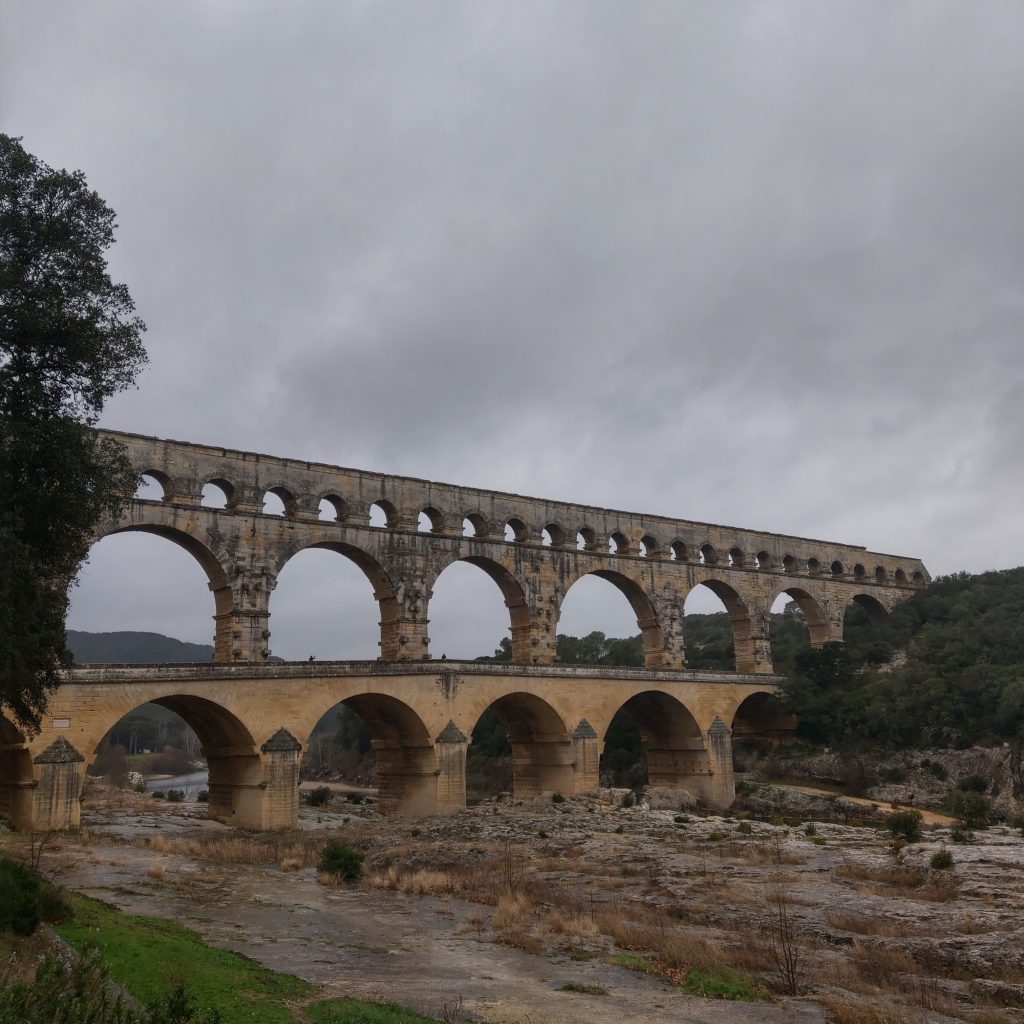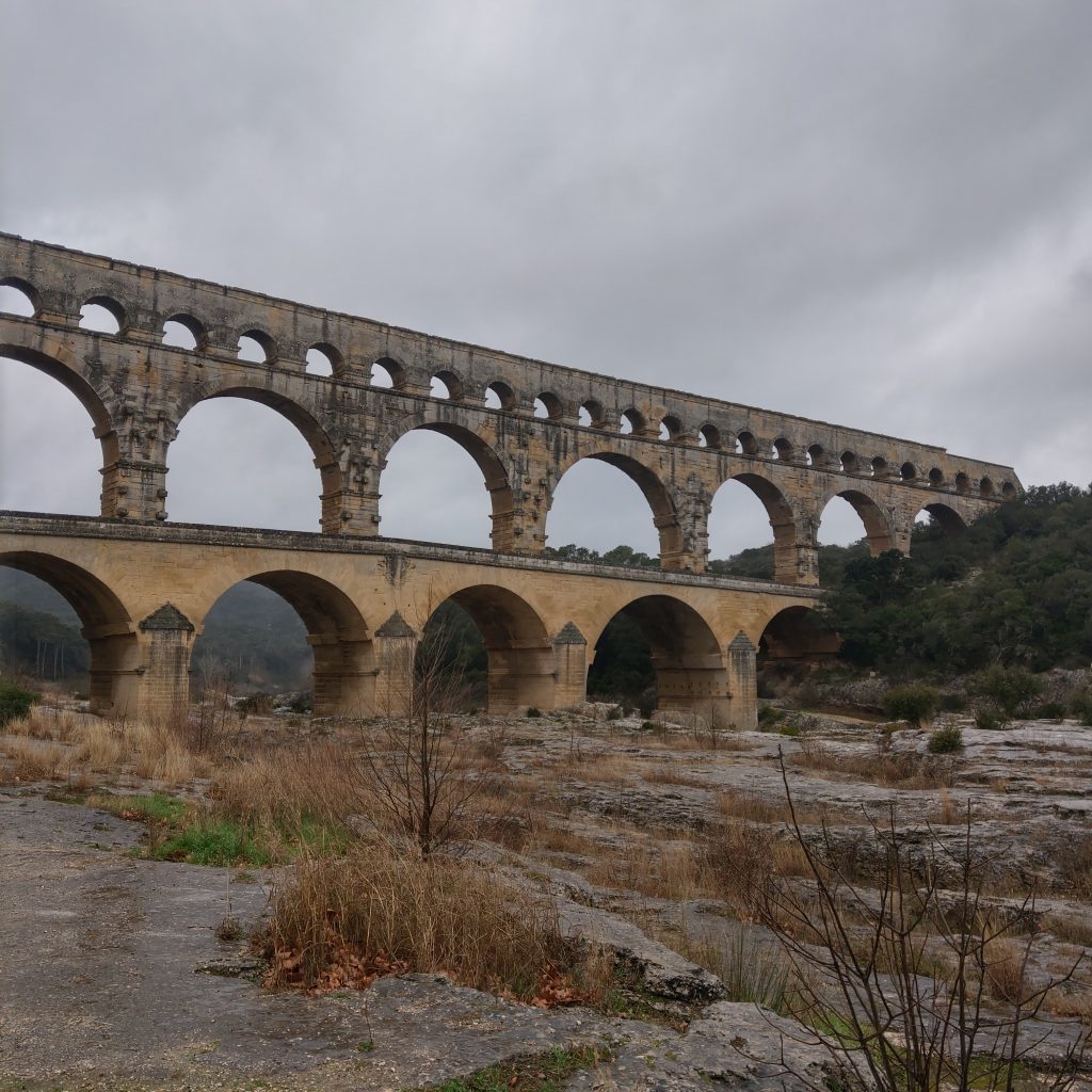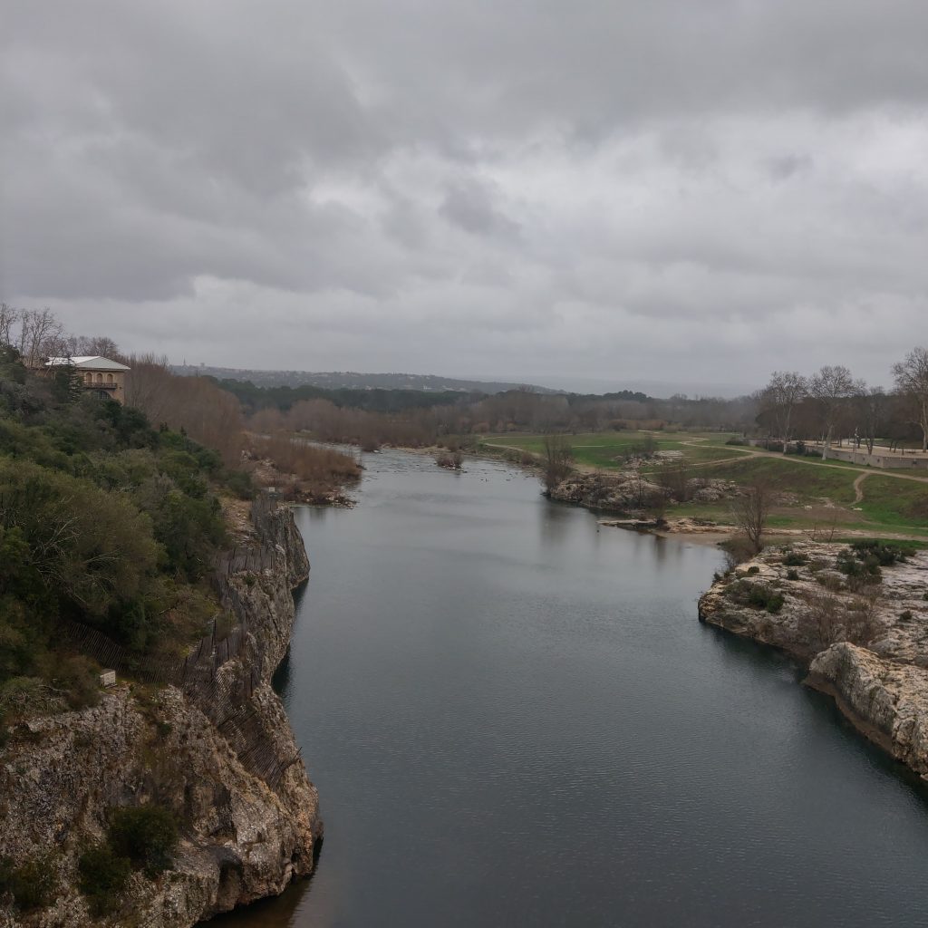 在橋上駐足欣賞前方的加爾河,頓時體驗到可以靜下心來享受自然,感受天地奧秘的靜謐,除了偶有路過的單車騎士外,幾乎沒有其他人。來到這兒的人應該都會不自覺會想「2000多年前的羅馬人用甚麼樣的技術建起這座水道橋?」、「是用甚麼技術將水送到幾百公里外的城市?」、「這座橋如何在羅馬帝國滅亡後,經歷千年的風霜至今仍屹立不搖」?