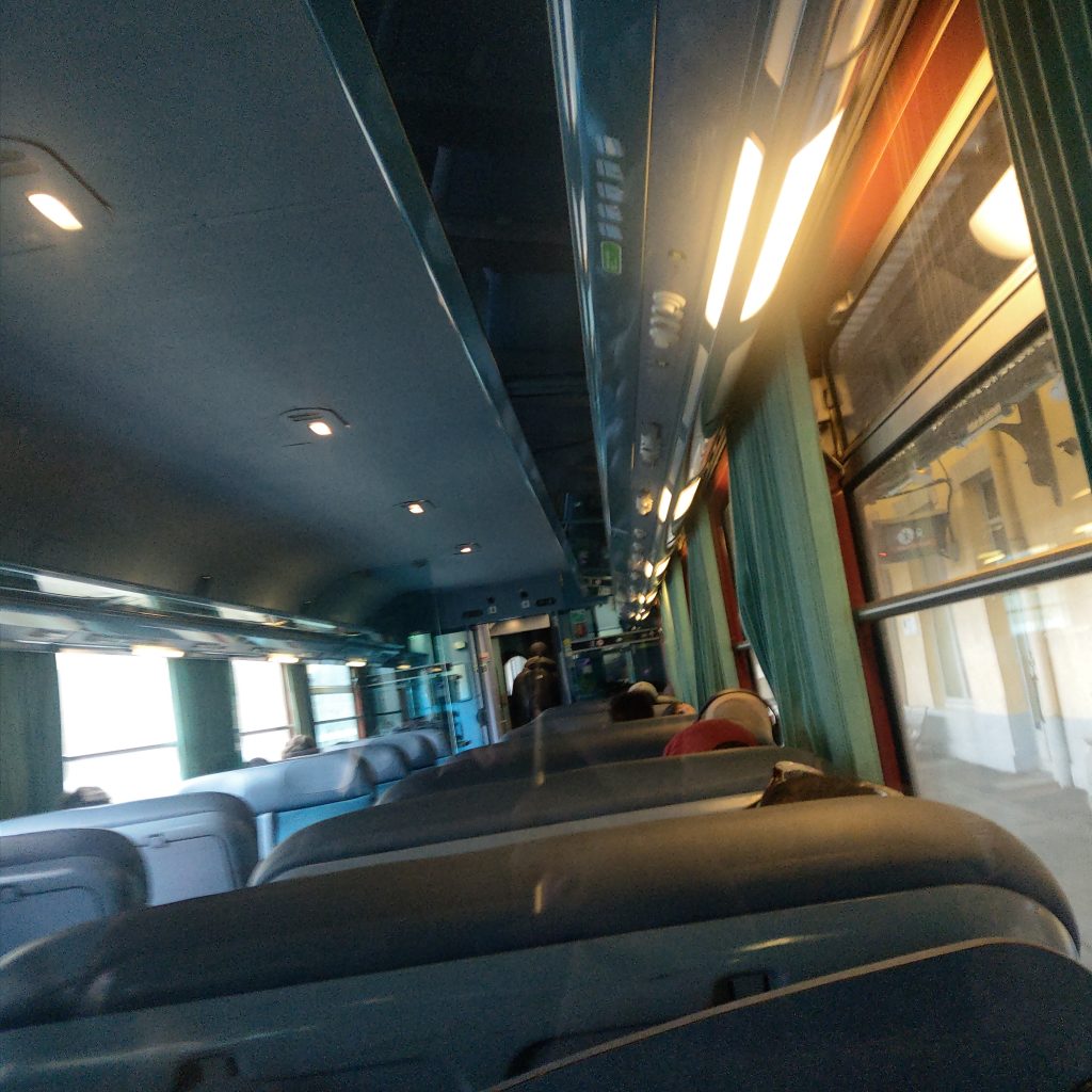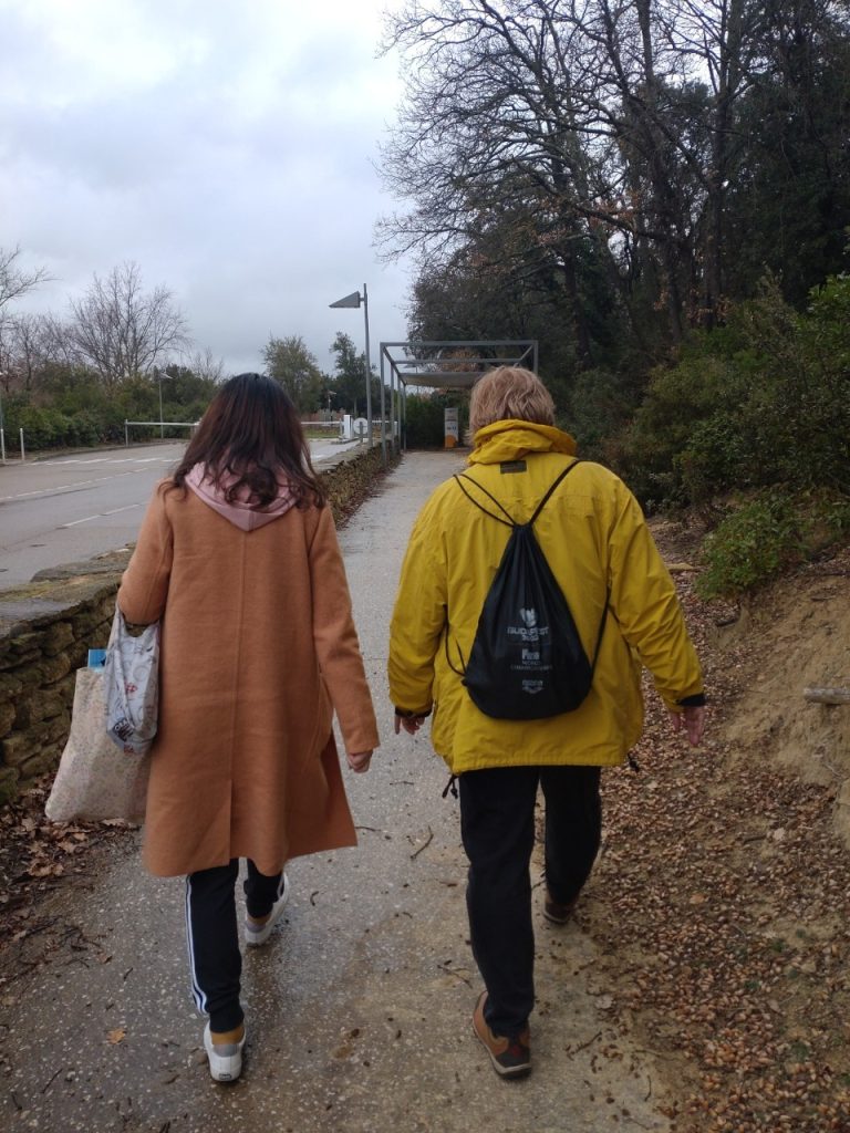 匈牙利姐姐擔心會錯過公車,大概12點50分就開始往回走,我跟友人硬是待到13點多才開始從對岸往回跑,賭回程的車也會遲到。途中小迷了一下路,一直鬼打牆繞不出園區,等好不容易回到了大馬路時,已經13點30多分了,正擔心會不會在找車站的過程中眼睜睜看公車從面前開過(此時心情憂喜半參),一轉頭看到匈牙利姐姐熟悉的身影,頓時心安了不少,這位姐姐真是我們的貴人啊!!! 在13點40分搭上車,回程異常順利,14點15分左右回到亞維儂,市區的雨仍然不小,是連歐洲人都要撐傘的程度,於是去商店買了一把折疊傘,順利在14點54分搭上火車前往亞爾(Arles)。