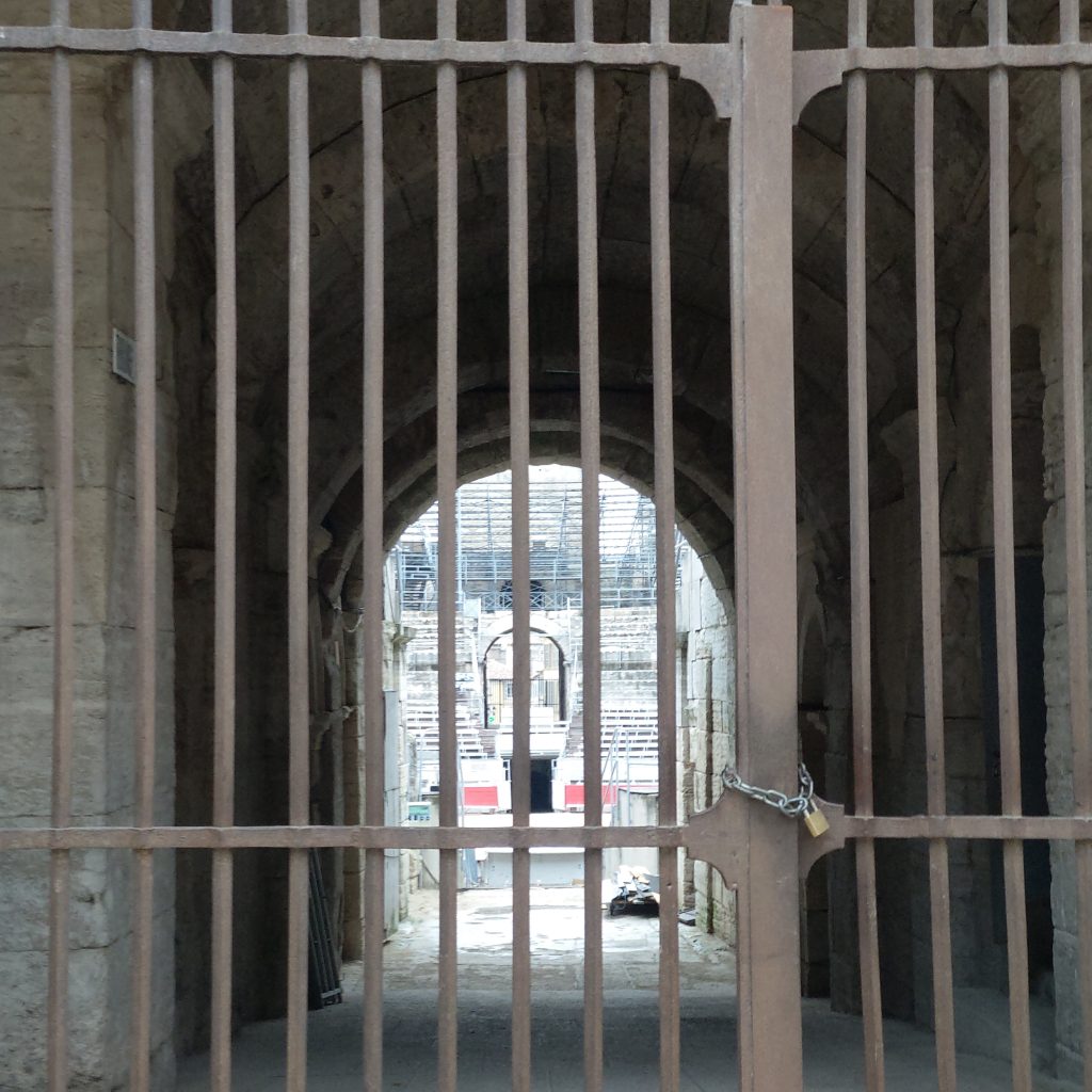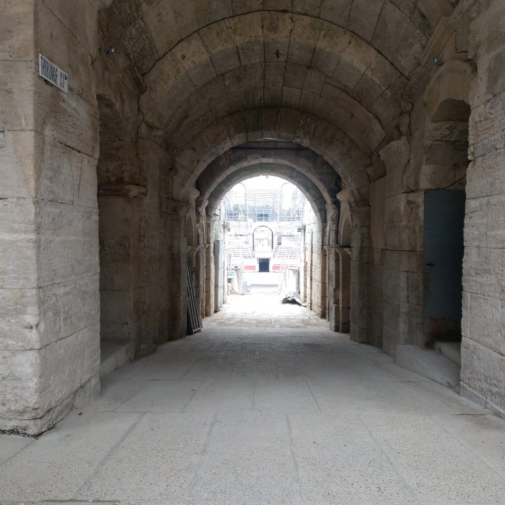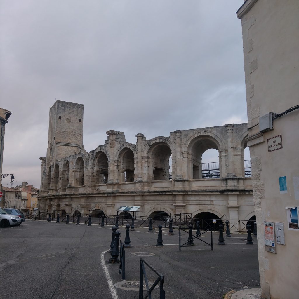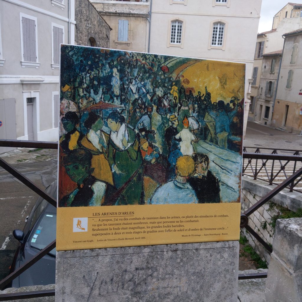 如果是自己一個人來,可能直接換掉之後的景點,悠然地慢慢晃到下午5點, 或是放空思考,或是上網蒐一段讀李維的《羅馬史》、吉朋的《羅馬帝國衰亡史》來讀,不過此行一來友人跟我都想去亞爾瞧瞧(梵谷還是有他的魅力的),加上又覺得等去過義大利或複習過羅馬史後再來造訪,說不定又有不一樣的感受,於是雖不捨但仍毅然決然地往回成的路上走去。