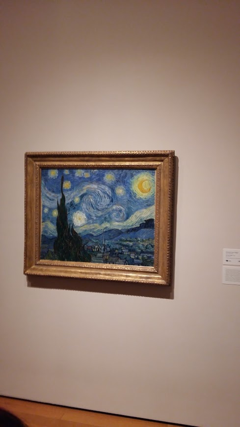 「隆河下的星空」洋溢著寧靜的美好,「星夜」則展現扭曲的線條和強烈的色彩,或許都是文森梵谷當下的心境寫照吧。