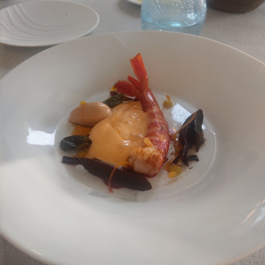 用餐過程中餐廳老闆跟主廚(兩個人不知道是不是夫妻或只是純商業夥伴)會輪流出來向每桌客人致意,並詢問餐點是否合意,主廚(比我年紀小的帥哥)的突然出現讓我有點措手不及,來不及細想反射性的比讚說“Very good! ”,後來再思考,其實很想跟主廚說蝦子的料理很讚,很慶幸能來這裡用餐,好想帶爸媽來吃XD,不過帶著亞洲人的I人特質只是心裡想想。