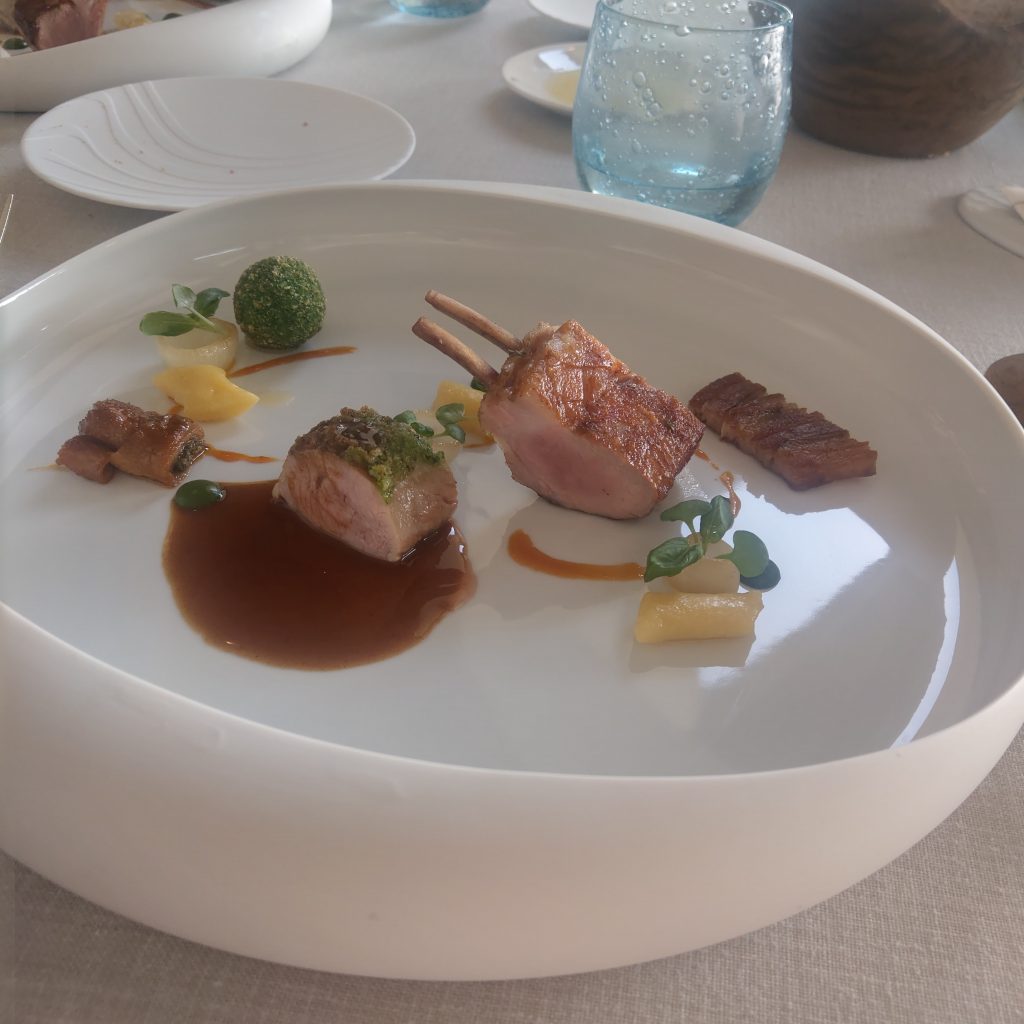 • 6道菜中最喜歡大蝦(prawn)的料理,把蝦殼打成泡沫,再把蝦黃或蟹黃做成冰淇淋,一旁選用的甜菜根輕甜可口,十分新奇及美味的組合。第五道羊肉以不同火候料理不同部位,個人覺得羊菲力跟烤羊胸(薄薄的那塊)處理的很好,完全沒有感覺到羊的存在(笑)